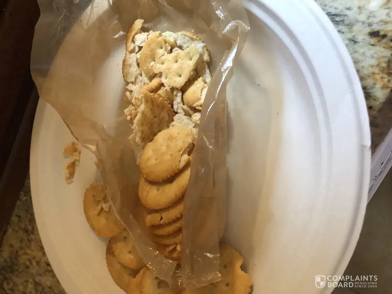 Please see attached pictures. These crackers were purchased yesterday (6/9/19) from Target on Millerville in Baton Rouge, La. As you can see from the attached pictures we found something completely disgusting. Upon opening, we found a chicken breast inside the bag. I find this troubling. How can a cracker company even get close to placing chicken breast in bags? Also, what is Ritz going to do to rectify this issue? I wanted to contact you guys personally before contacting anyone else. This is repulsing and should never happen. What on earth could have happen if my daughter would opened this package instead of myself. Please let me know how to proceed and where this should go now.