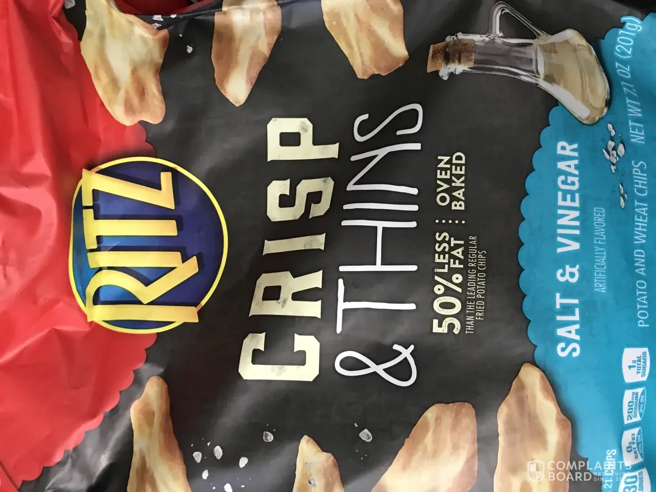I bought a bag of Salt & Vinegar Crisp & Thins & was very disappointed when I realized they had no taste ... ( they were plain) I had purchased the Salt & Vinegar ones in the past & they had a great flavor- this particular bag did not ... I had a friend try it & she agreed that these were plain ... I was upset because I paid for Salt & Vinegar & got plain ones 😒