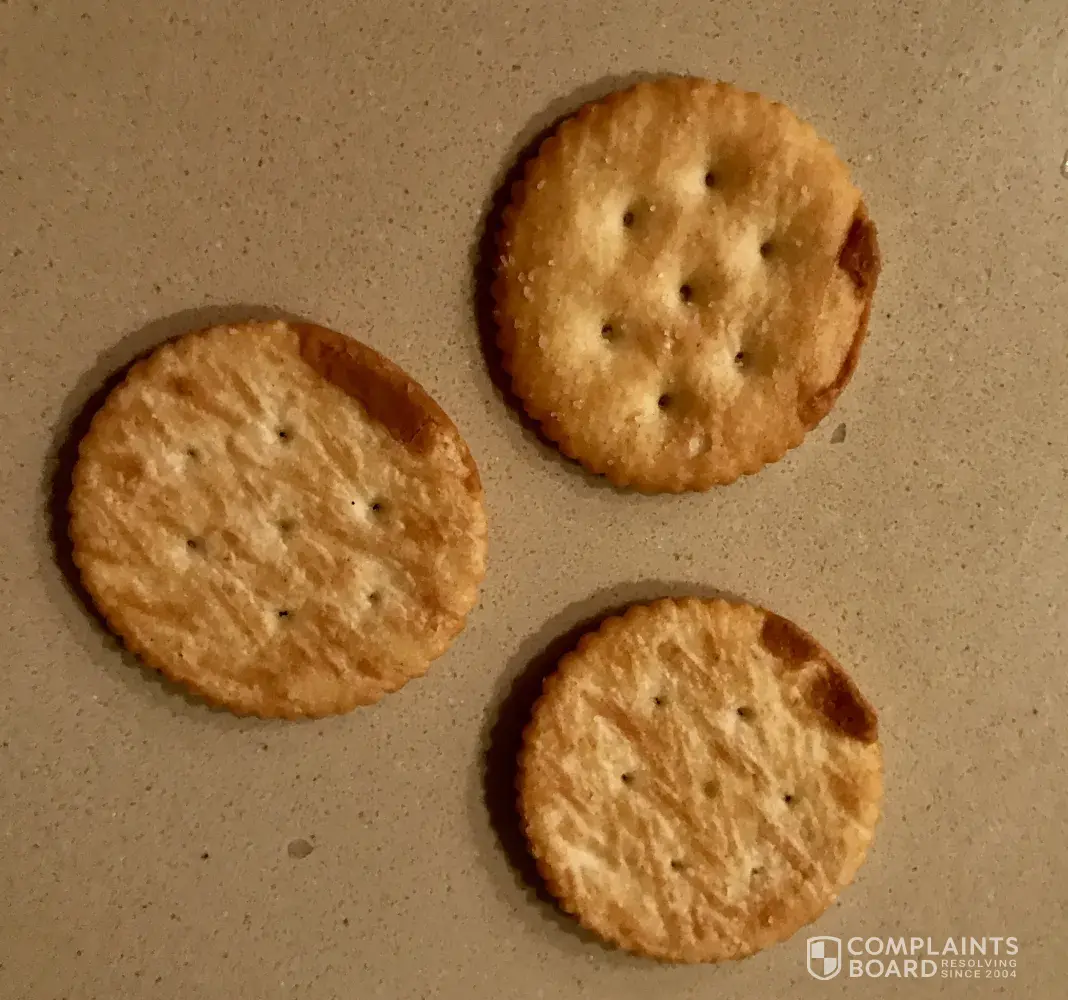 It is funny that I saw this while casually reading complaints because last week I purchased ritz crackers and every cracker is either crumbly or burnt horribly!
