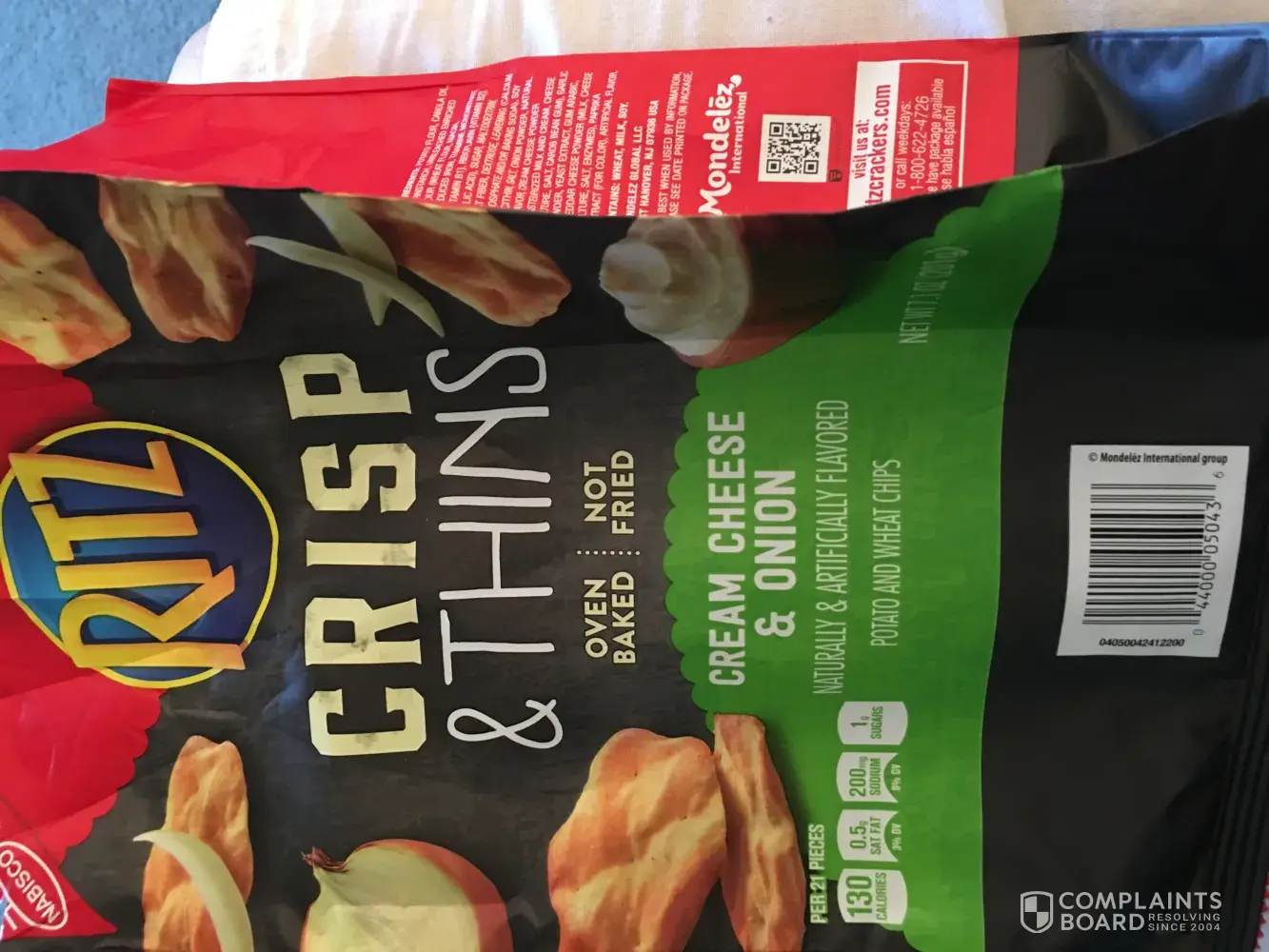 I have purchased several bags of Ritz crisp and Thins. The majority of the time they have been of good quality and I have had any complaints. I do love the taste of these. However, twice there has been an issue once from a Walmart in Salt Lake City. I got a bag and they were mostly crumbs, just little pieces, no solid pieces. I didn't think to complain but recently I bought another bag and this one was a cream cheese and onion bag. I got that at Smith's in Salt Lake City on 900 West. This bag had no flavor of cream cheese and onion. Just a plain taste. No flavor whatsoever!