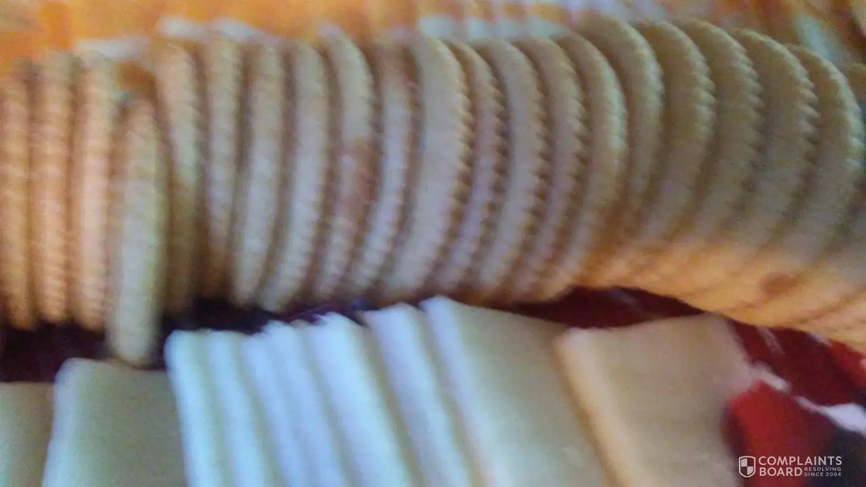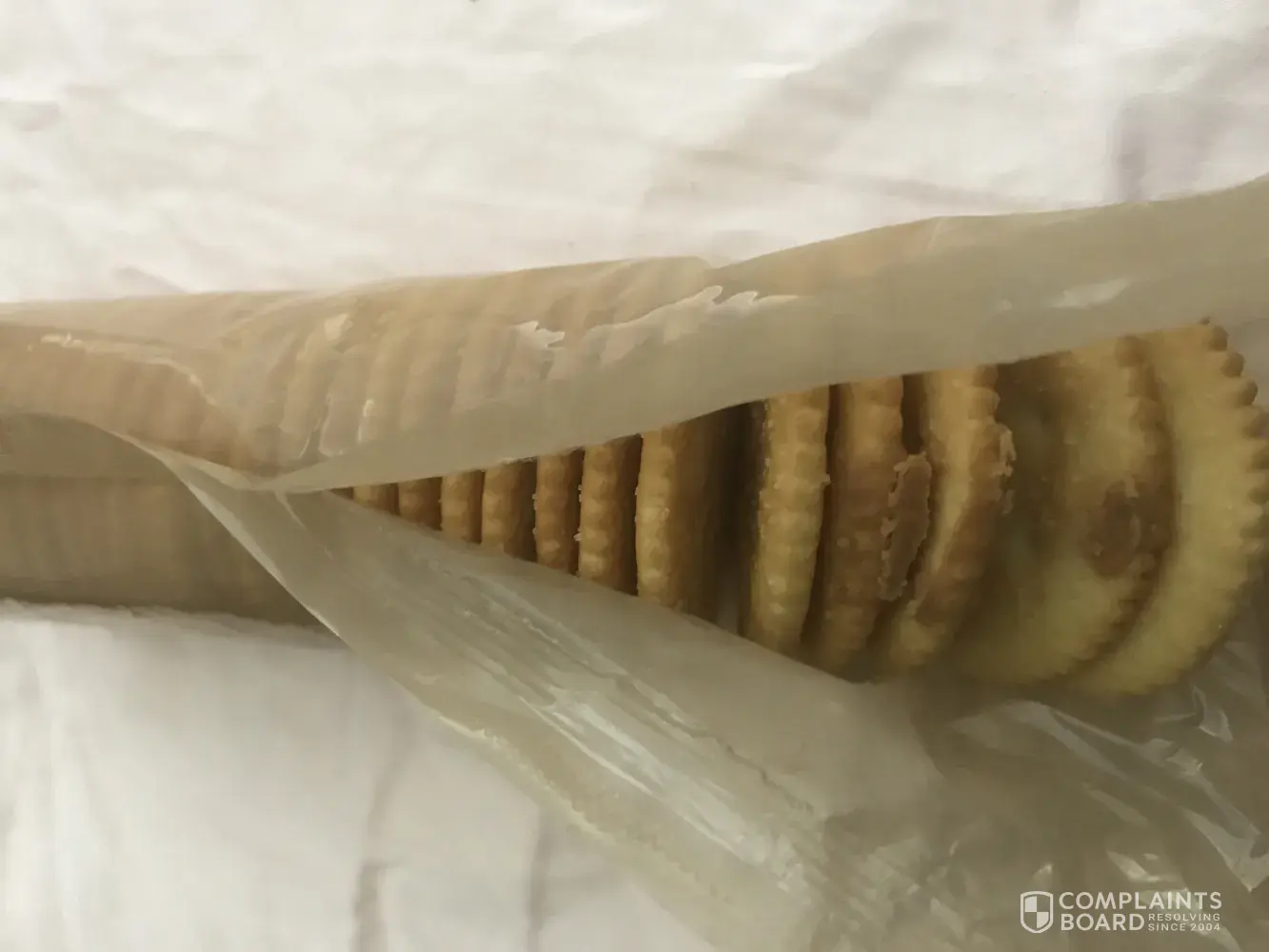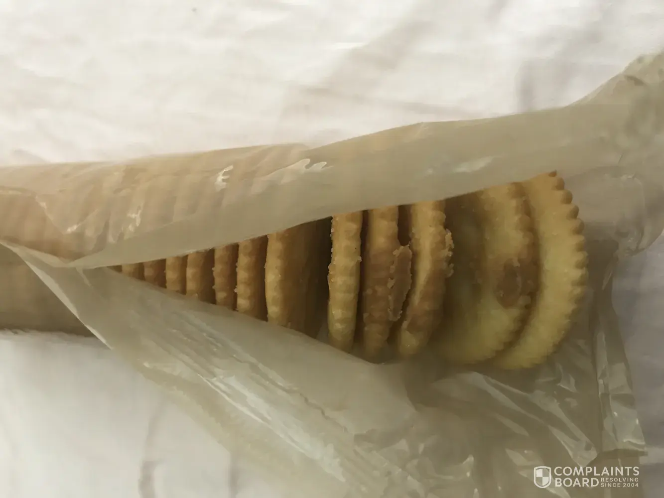 I opened the outer cardboard packaging of the ritz crackers and the foil packaging containing the crackers had not been sealed properly and had sealed onto the existing part not the joining part - resulting in the packing sealing but not sealing anything shut leaving the crackers stale.