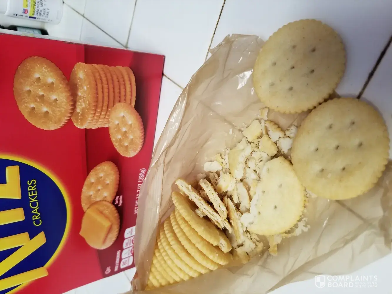 I pulled out a tube of crackers form the box and found it was only half full and partially crushed. Ritz crackers are my favorite crackers and I was very disappointed in what i found when i opened the box i had just bought . I hope this can be resolved easily and quickly. Thank you for your time.