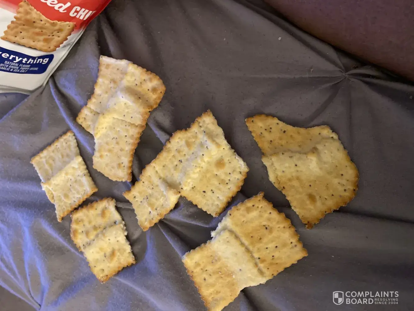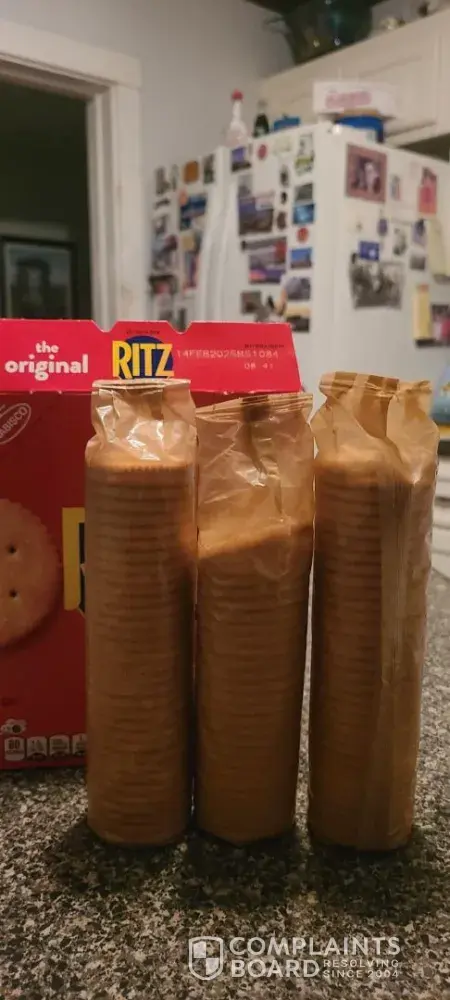 Upon opening 2 new boxes of ritz i found that many of the crackers were broken or crumbling.
