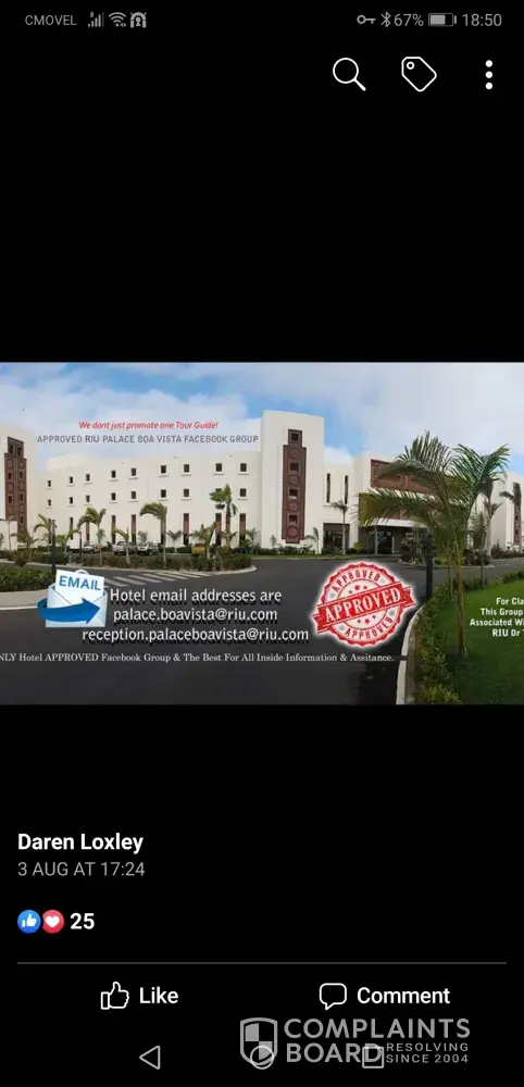 We are currently staying in Cape Verde at the riu Palace I have spoken today to the assistant manager Pablo regarding a Facebook page set up saying its a approved site they will let nobody put any comments regarding any customer issues the site is basicly saying your hotel is perfect so when customers have issues they are not allowed to voice an opinion in my opinion and many other people we have spoken to they may not come back as it looks like your company are allowing them to run the site for you. Some of the people who we have spoken to would not have come knowing this. The manager said he was not aware of the Facebook page and said it is not approved and would report this. The site needs to be closed as its costing you customers re booking or not wanting to visit.