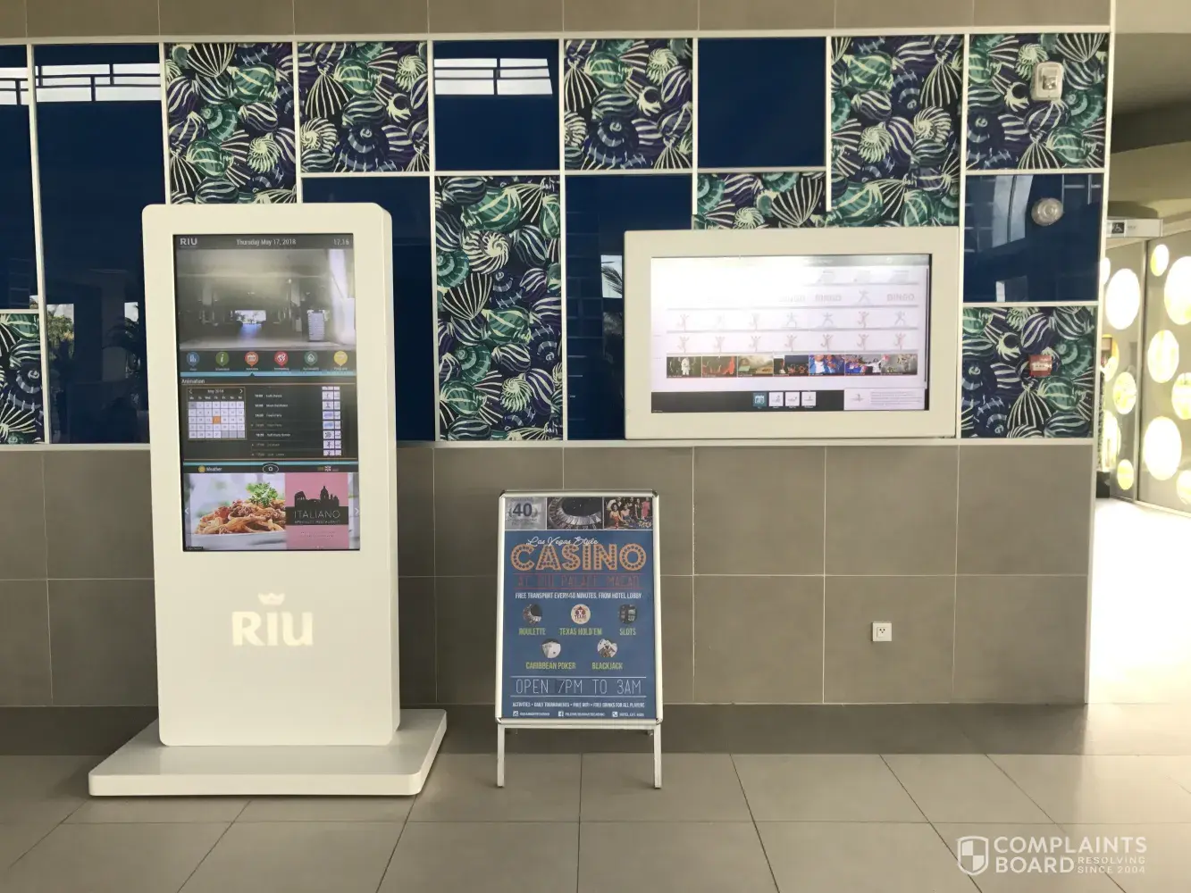 The RIU REPUBLICA is advertised as an exclusive 5 star, all-inclusive adults only resort on the Sunwing website. The resort advertises the casino at their sister resort RIU Palace Macao (also advertised on the Sunwing website). The casino is listed on the RIU website and on all the resort pamphlets and offers coupons for the casino. A free bus runs from RIU REPUBLICA to RIU Palace Macao each evening and hotel staff advertise this in the lobby and personnel from the hotel are actively trying to solicit customers to go to the casino (please see pictures attached).