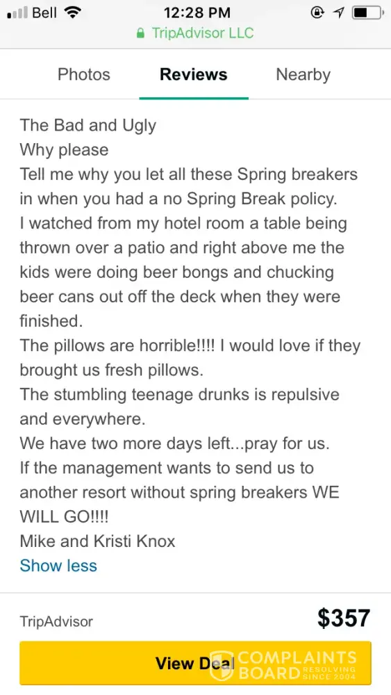 While she was packing I called Expedia to see what they could do, they told me stay on the line I’ll call the Hotel. About ten minutes later he came back on the line and said to me they will do nothing you have to write a letter to customer service.