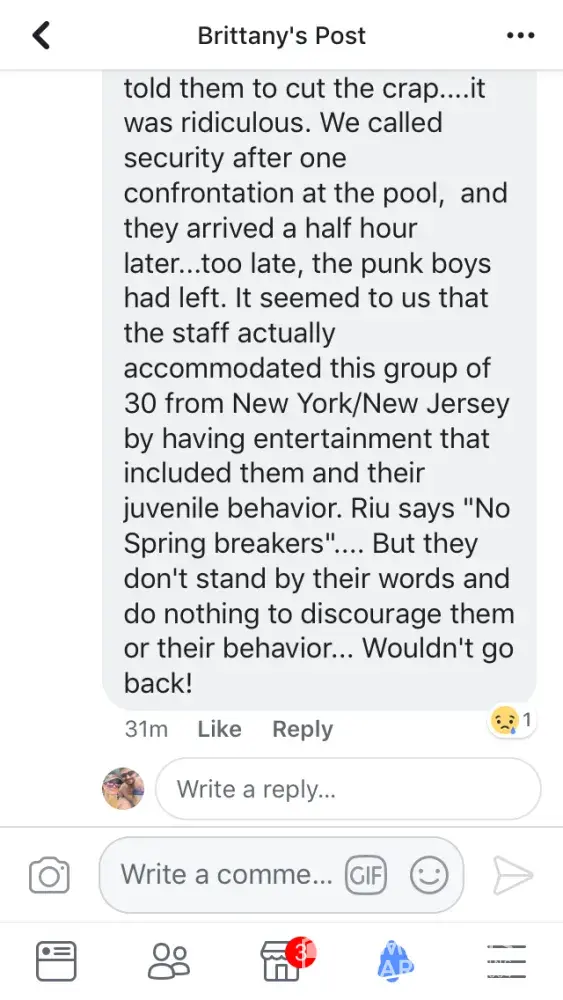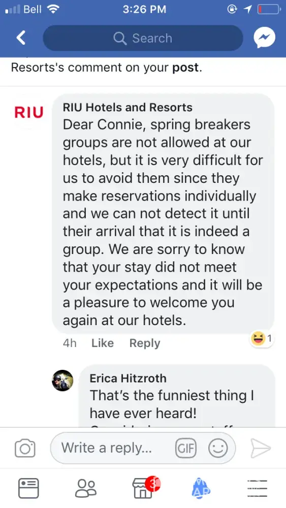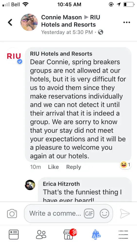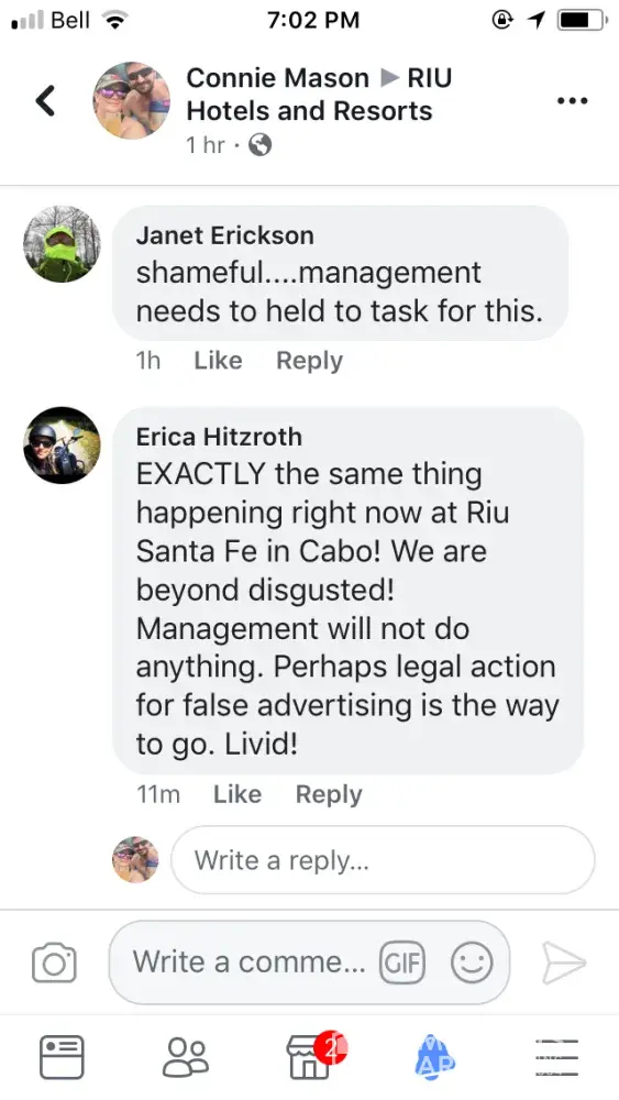 We still have confidence that Riu Hotels & resorts can fix this situation and find a way to meet our expectations.