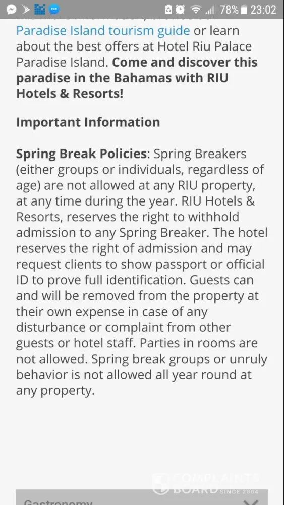 RIU Hotels & Resorts Complaints Page 15 of 26