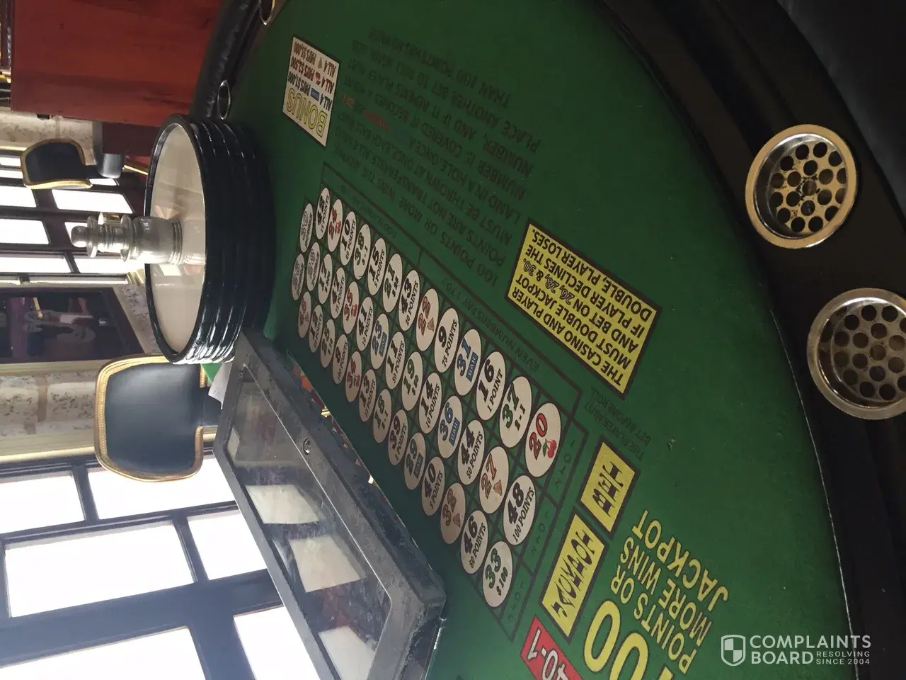 I have been reading about this casino scam on the internet for about 3 months prior to my vacation. They lure you in through a casino 'promotion' with $20 in free play. Once you get lured in they have you throw 8 balls into a roulette and the dealer acts so surprised and tells you that you are so close to the jackpot. They then ask for a credit card so you can continue rolling but your bets keep doubling. The game is nearly impossible to win and there are stories of people loosing up to $40, 000! The casino says that they aren't involved with the game and that it is a private table that rents out space. This is a true scam by real con artists. I have attached a picture of the game, read the rules carefully. The game is very attractive by instinct but it is a scam. If you try to watch players play in the casino security will approach you and say this is a private table so you cant see the people loosing their life savings.