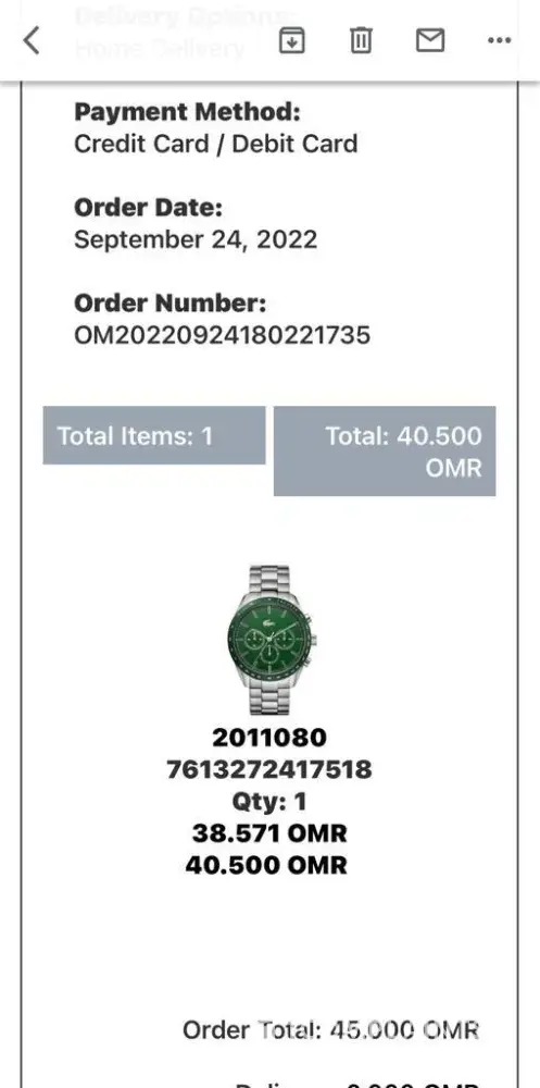 My order no OM20220924180221735 for a purchase of a Lacoste watch voa courier lroduct no 2011080 is still did not received to me , i have already done advanced payment by my card, kindly look into this matter.thanks