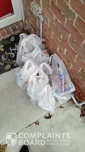 Driver did not ring the bell and when I looked out the window, the driver was slowly walking across my lawn. My lawn is NOT A SIDEWALK.