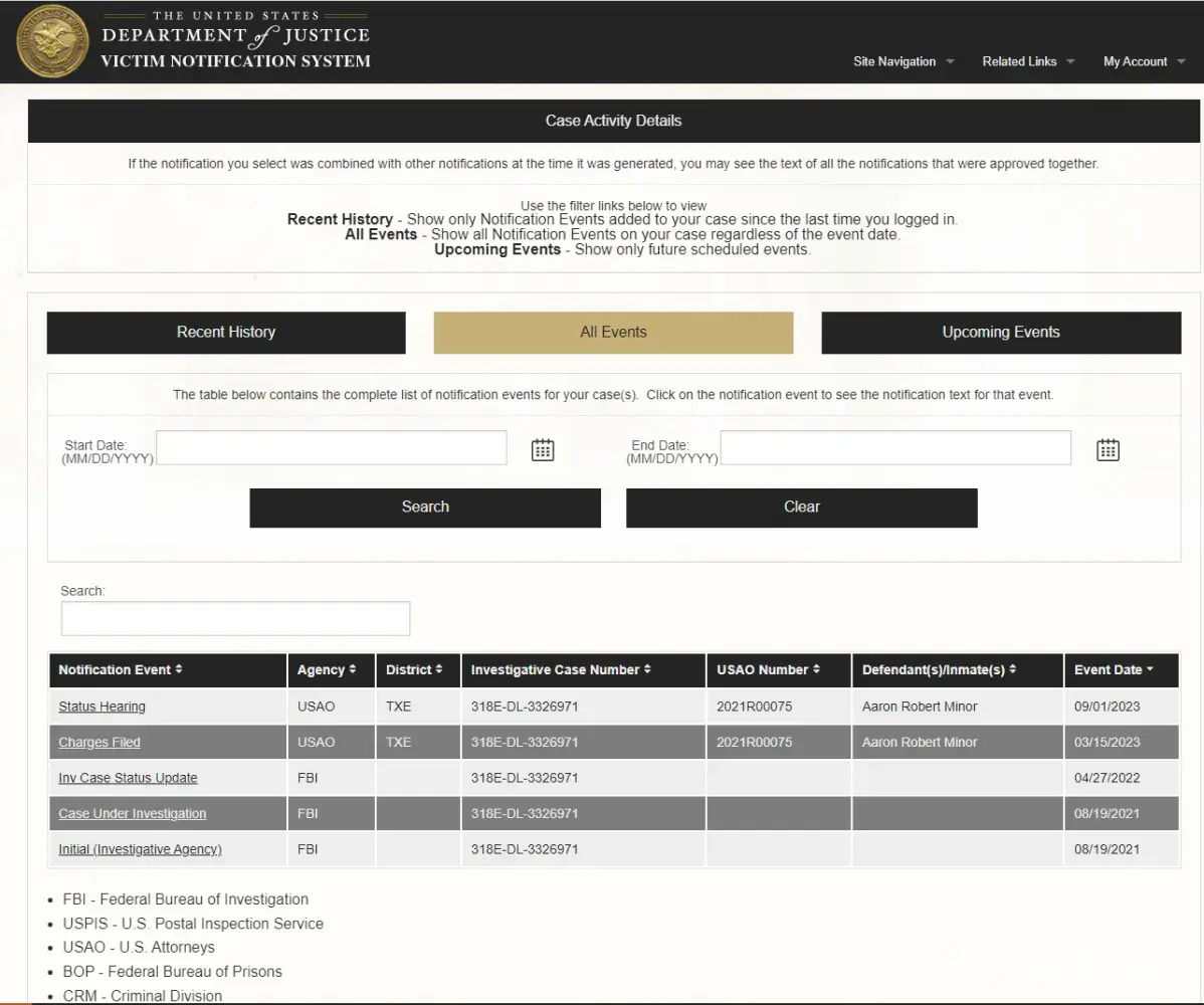 "At this point of impasse, created solely by Minor, it is my legal obligation to provide to the State and Federal authorities the same information we have provided in the past that has eventually led to 34 multiple criminal indictments and 32 guilty pleas. One of the remaining swindlers is facing life in prison so he has opted for a trial by jury and the other is awaiting his opportunity to plead guilty. I strongly believe that all of these Texas based oil and gas con artists should be put in prison for as long as possible and they should be utterly destroyed for intentionally perpetrating a known fraud scheme and targeting our elderly citizens and, more importantly, those that have placed their lives in harm's way to protect America and its citizens."
