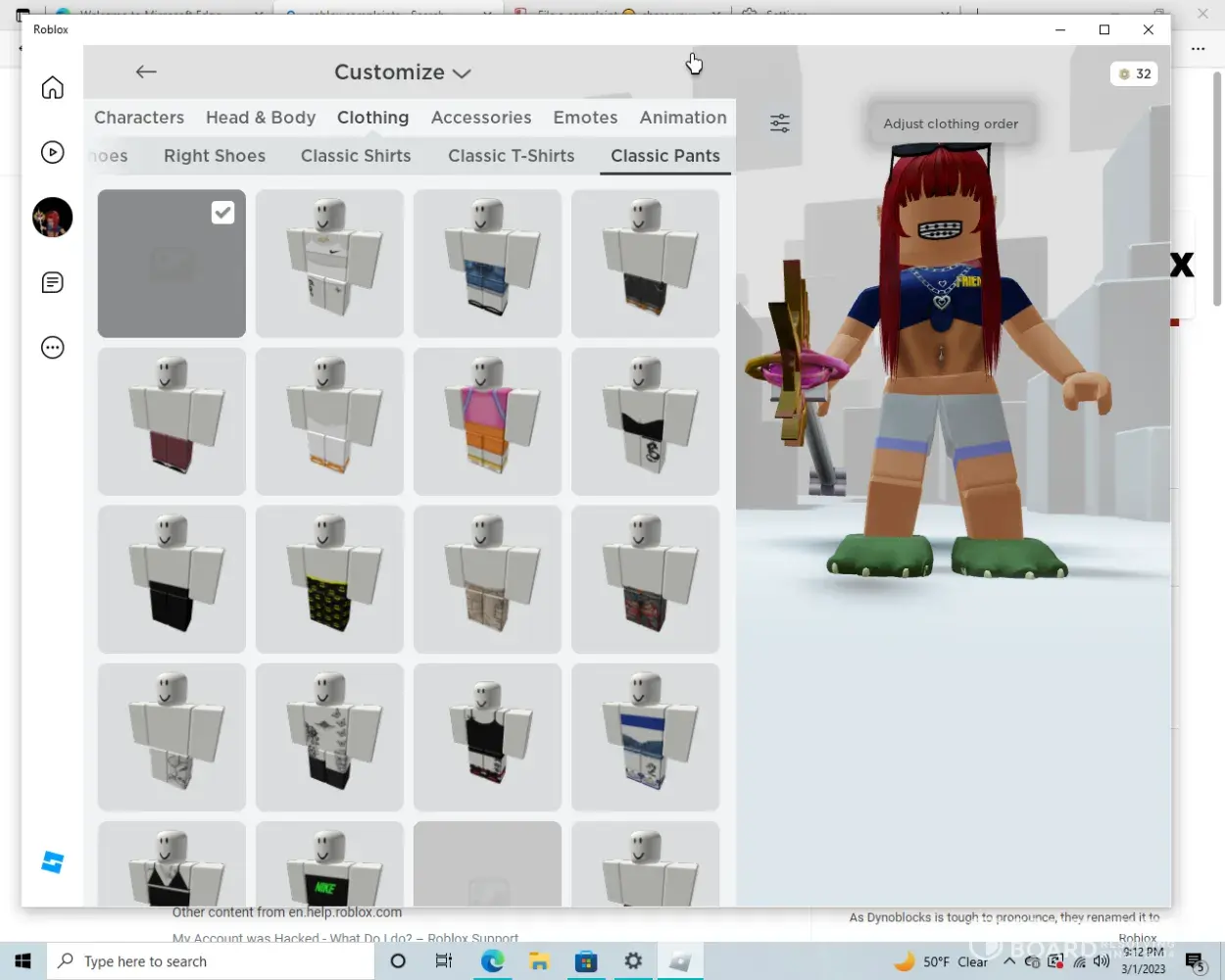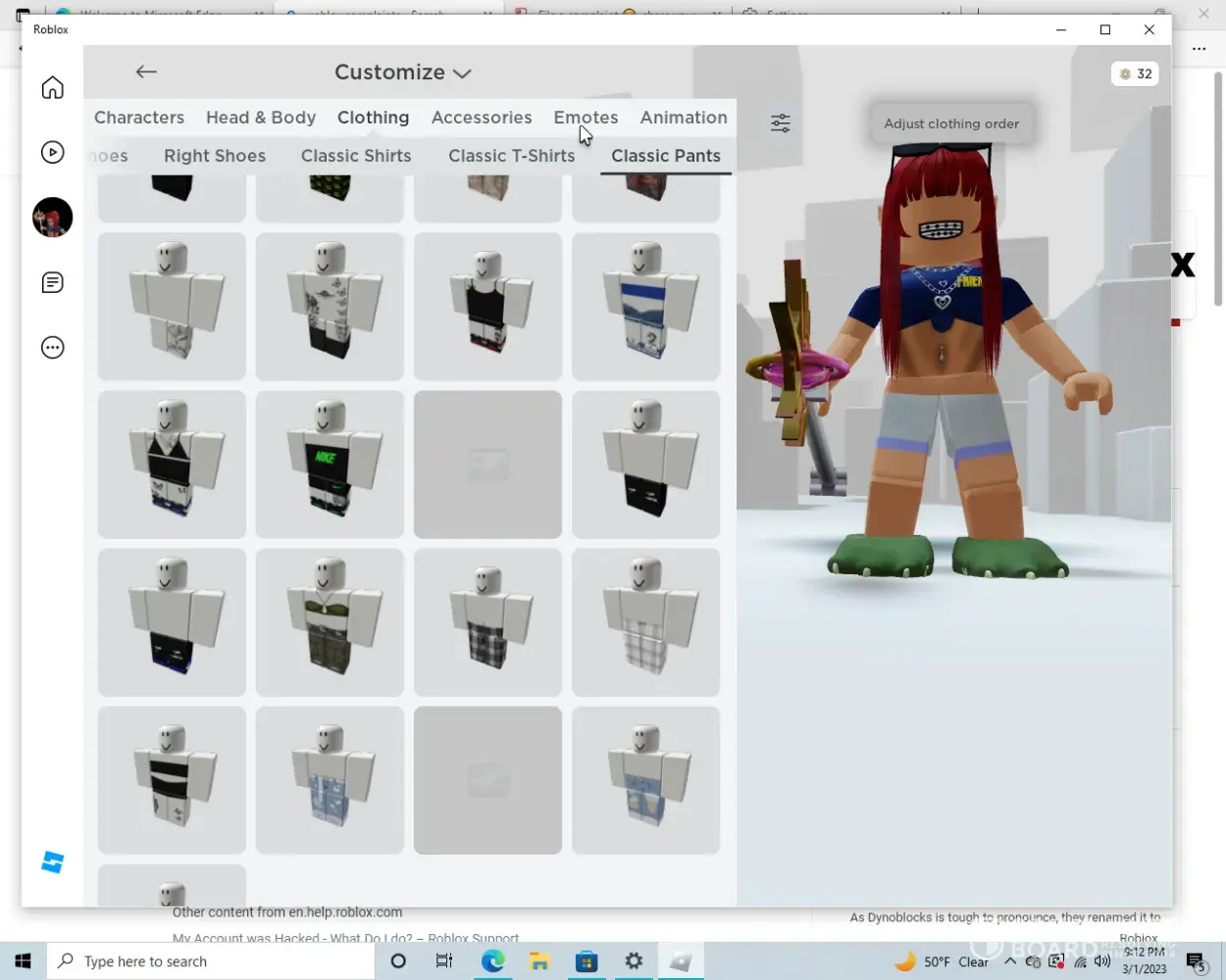 So Roblox has a currency called robux you can spend real life money to get them and buy what you want so i bought a pair of shorts for my avatar and 2 days later their was a gray screen over the avatar box and i could not were it at all it has been 3 days since i was able to wear the I just want my clothes back i paid robux for them please fix this i have setup a youtube channel using my avatar with the clothes. or at least give me my robux back please help it was like my clothes where deleted or something and in my clothing their is acully more than one item like this