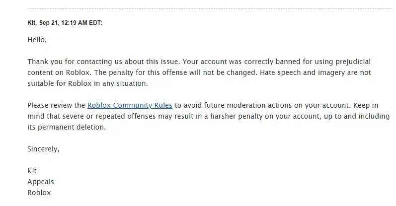 Well i have played Roblox on the 19th and So you wold Think that Roblox was Going Falsely Ban People Because of " Hate Speech" is not Permitted Really its Freedom of speech And also if some one says Yes That Doesn't mean banning them And Using the Appeals for a Ban Won't Wont Work so Just Wait it out Cant the Company just Stop banning