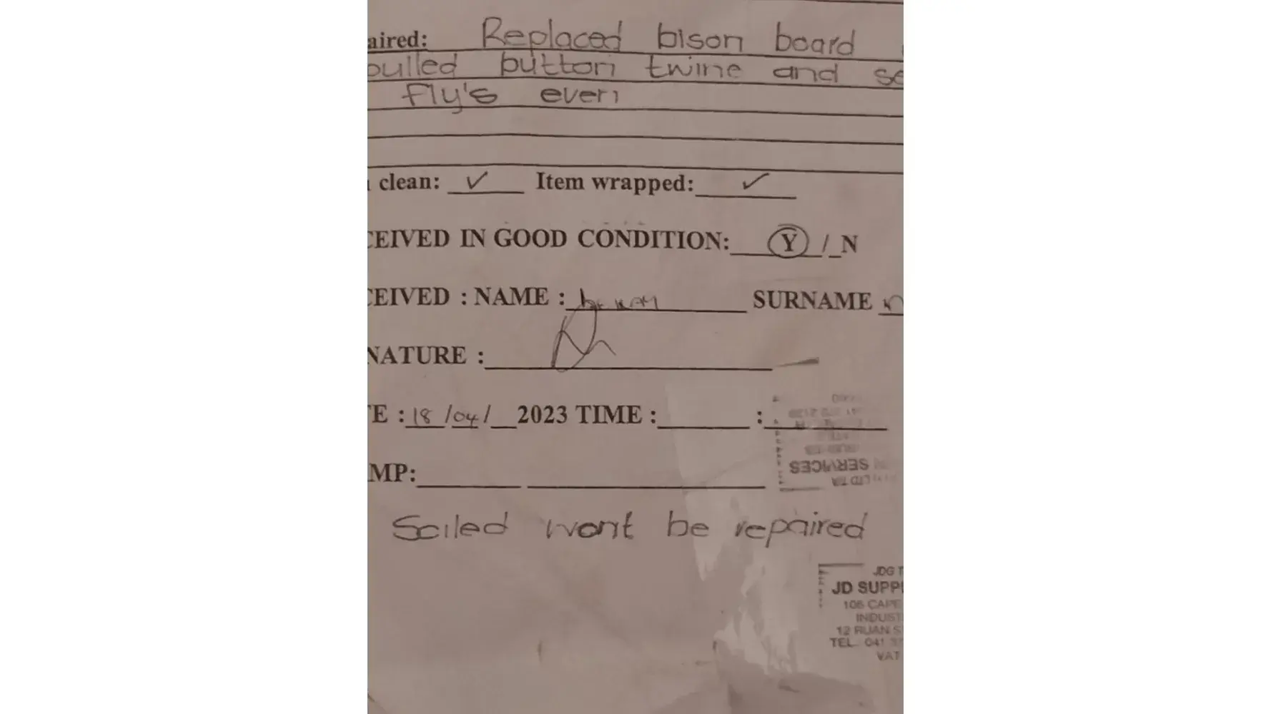 The Lounge suite was only delivered on the 9th February 2023. Attached please find the photo’s of what the lounge suite looked like when it was delivered. We took it up again with Celeste the branch manager where she arranged for it to be picked up again for repair. They picked it up on the 13th April 2023 and delivered it again on the 27th April 2023 with a note on it that reads â€SEALED WON’T BE REPAIRED†please see note attached.