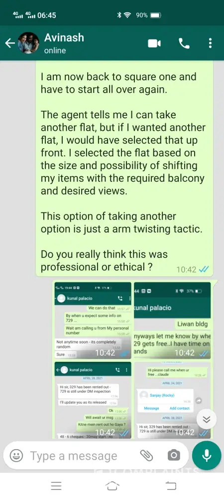 Suddenly on the morning of 4th may I got a call stating the flat was rented out to another. I was in shock as we had made all preparations and upon inquiry I was told that the flat was rented out by the Managing Director himself.