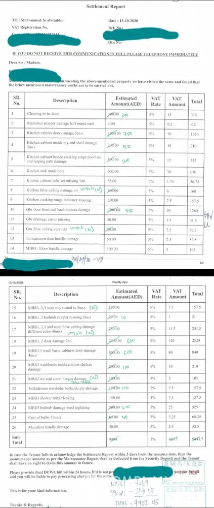 just negotiate hard, pay 300-500 and get refund. going to rdc doesnt help much as RDC needs everything in arabic so you end up spending [protected] in court ans they still win. Bad state for tenants, and they are exploiting it, but God will find a way to set their business right. it is just a matter of time.