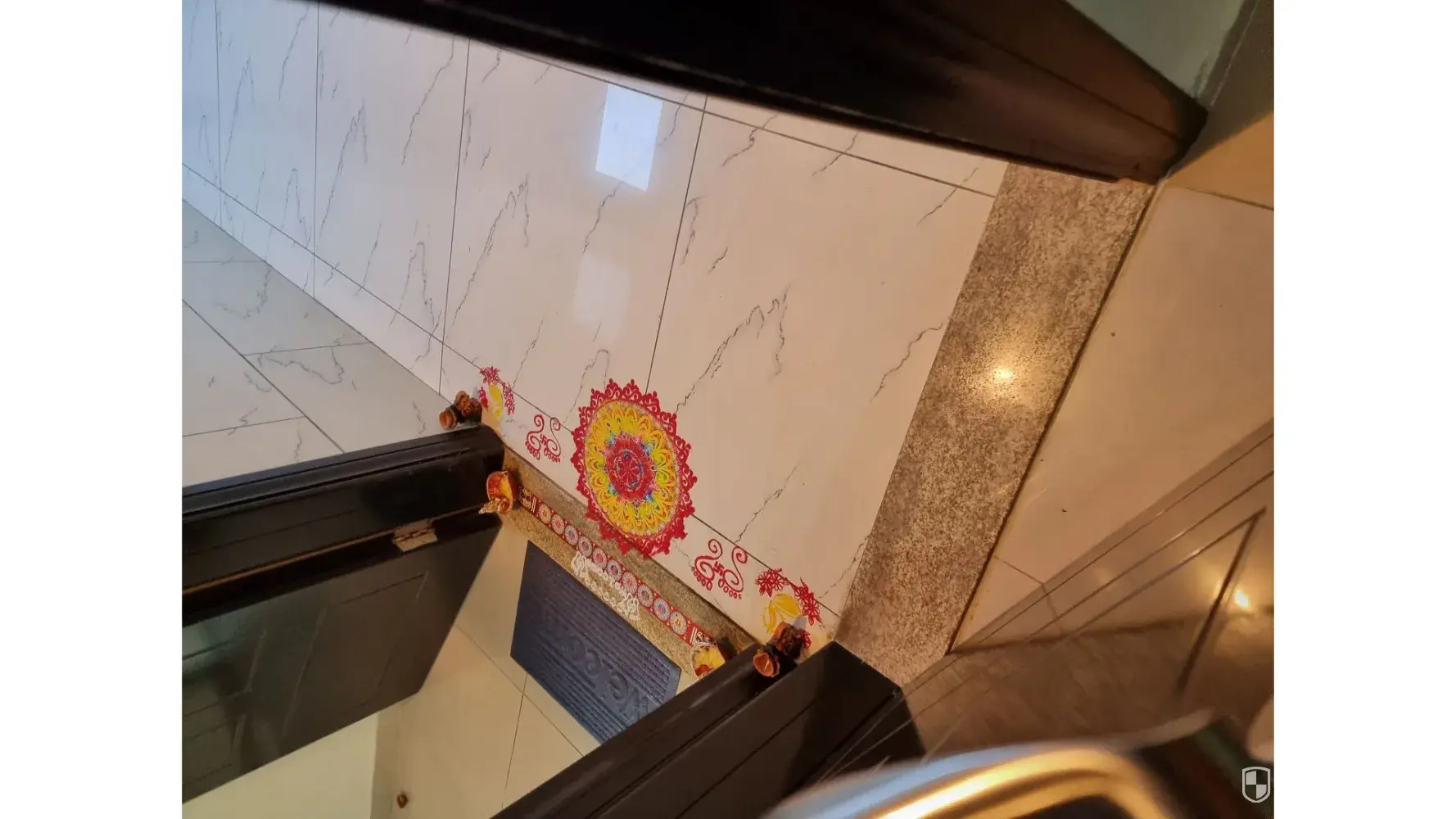 Every Diwali my next door neighbour put rangoli in front of our house. Kindly ask her to put the rongli inside her home.