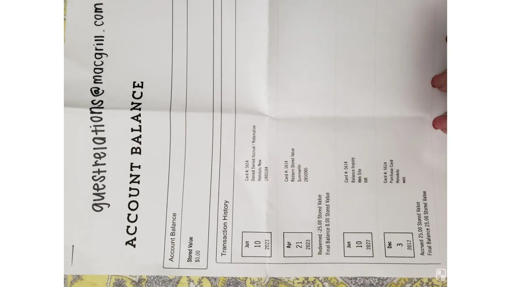 Gift card was used by someone in summerlin. I was told by management that I could get a replacement