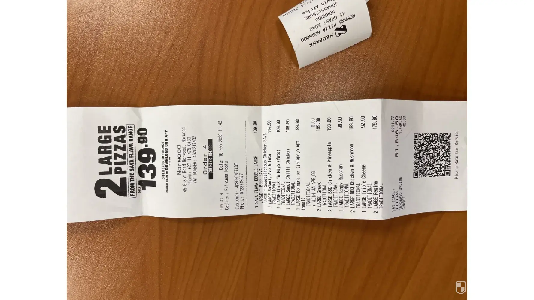 I just bought a pizza and pizza pie at pan africa mall in Alexandra.