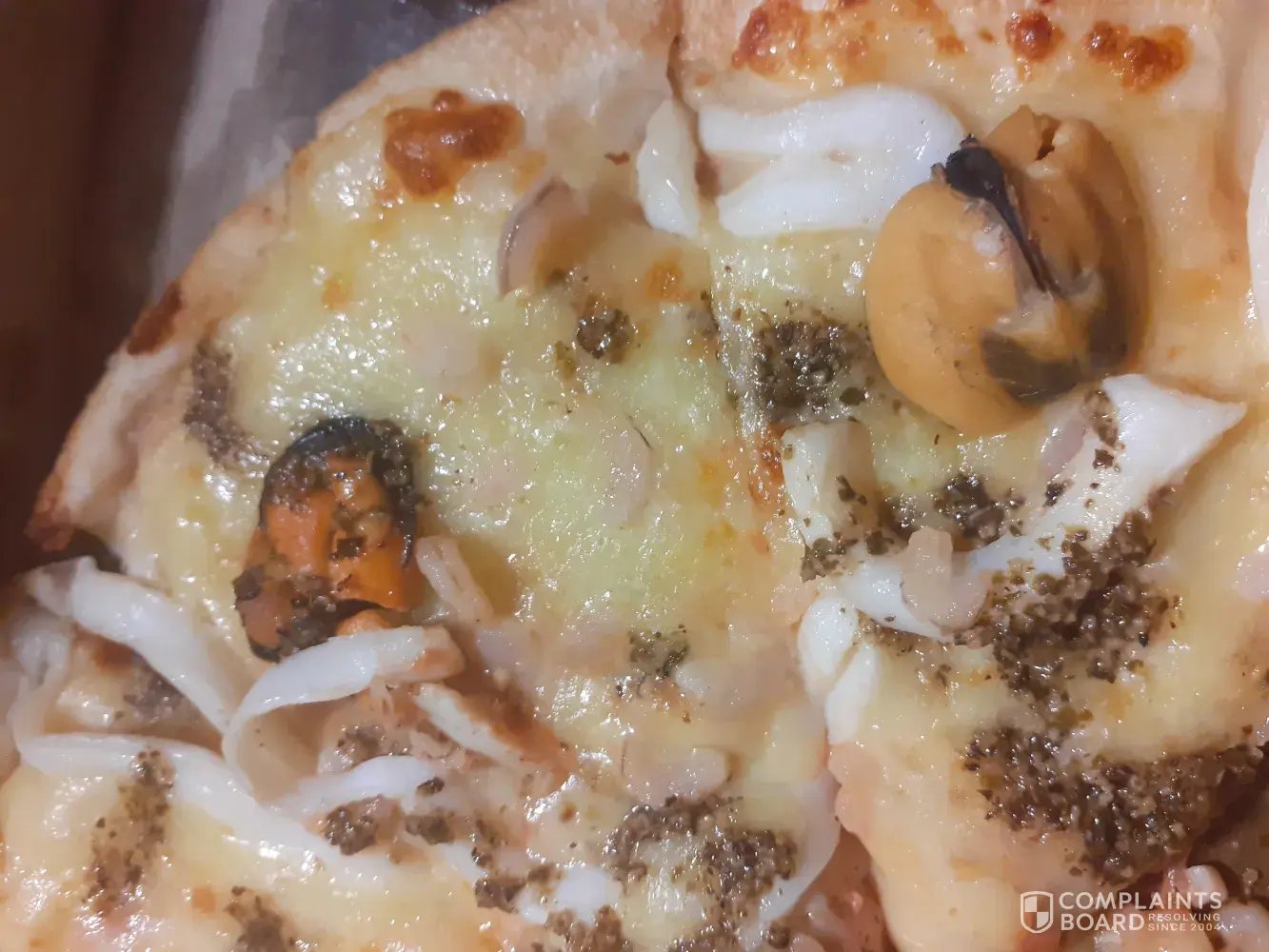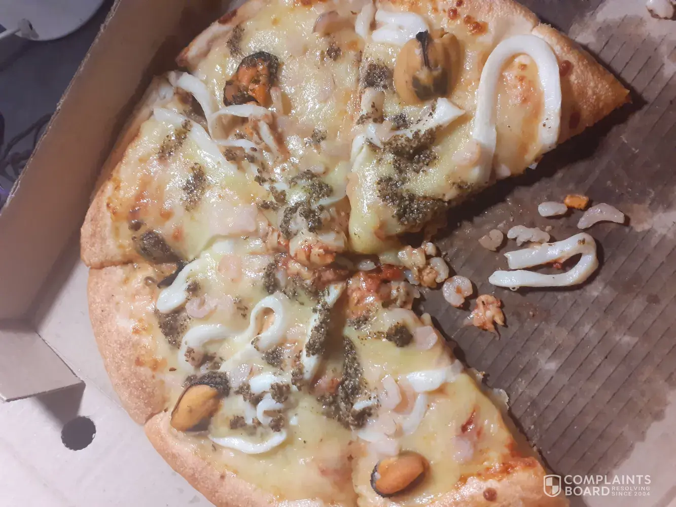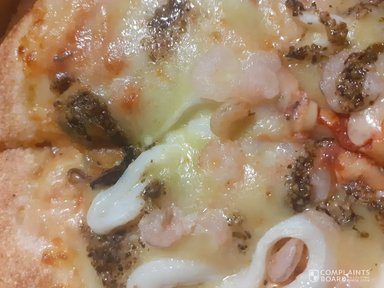 The issue was the shrimp on the seafood pizza was uncooked and also still had the dirt and feceas (poo) line in the shrimp.