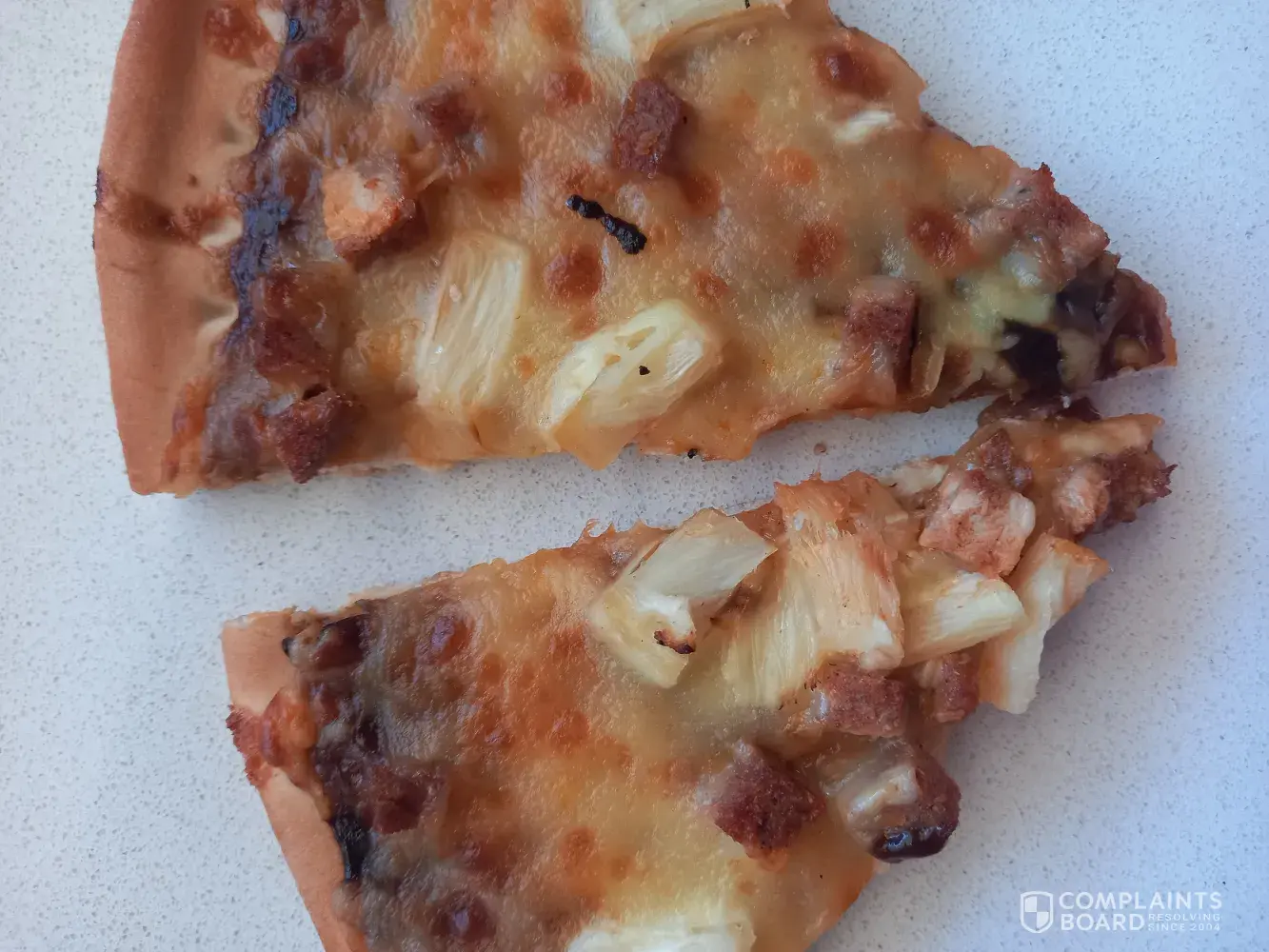 Hi , on 24 March 2022 we bought 2 large tropical thin base pizzas that we normally buy at Harties branch but the bacon was too little ,you will see evidence attached ,please help