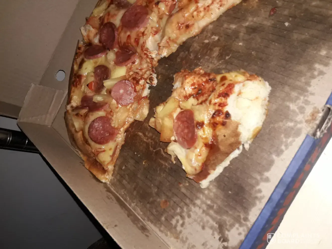 I was looking forward to this pizza, only to be met with a cockroach flying out of the pizza box. There I was thinking to myself while watching my dog eating that pizza, how does a bug of that size crawl into a pizza box without someone noticing. I am glad to say: I never had bad service from your lot, but this is by far the grossest thing I received from fast food services.