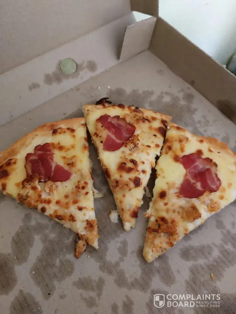 I bought 4 large chicken and mayo yesterday, it seemed like for all those 4 pizzas I bought they used 4 bacon cut it in pieces and placed a small piece on each slice. And the cheese is worse can hardly taste it. Am unhappy dry pizza