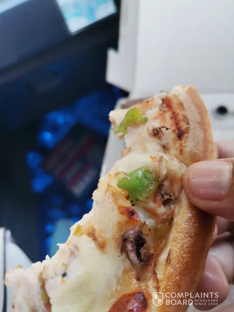 Bought a chicken barbecue pizza at Strand branch and later that night had the last 2 pieces. After the a few bites I found a piece of wire in the slice. As it was after 11 at night I couldn't return it and also not the next day. What would have hapened if I swallowed it? Not going to buy there again..very disappointed that I cannot take it back and be compensated.