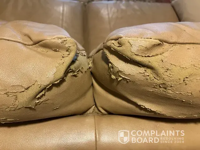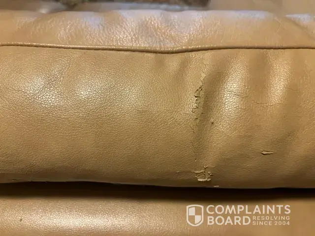 I purchased the Colorado Sofa and Loveseat (SKU [protected] and [protected], color Natural) in September of 2014 (Order No. [protected]) from the Pensacola, Florida location. This furniture has very little traffic, no animals or children in the household, and the leather is cracking and flaking off in the areas between the cushions and on the top back of the sofa and loveseat. This deterioration began two years after the purchase, and it has continued to deteriorate. and flakes of the leather exterior continue to fall on the floor.