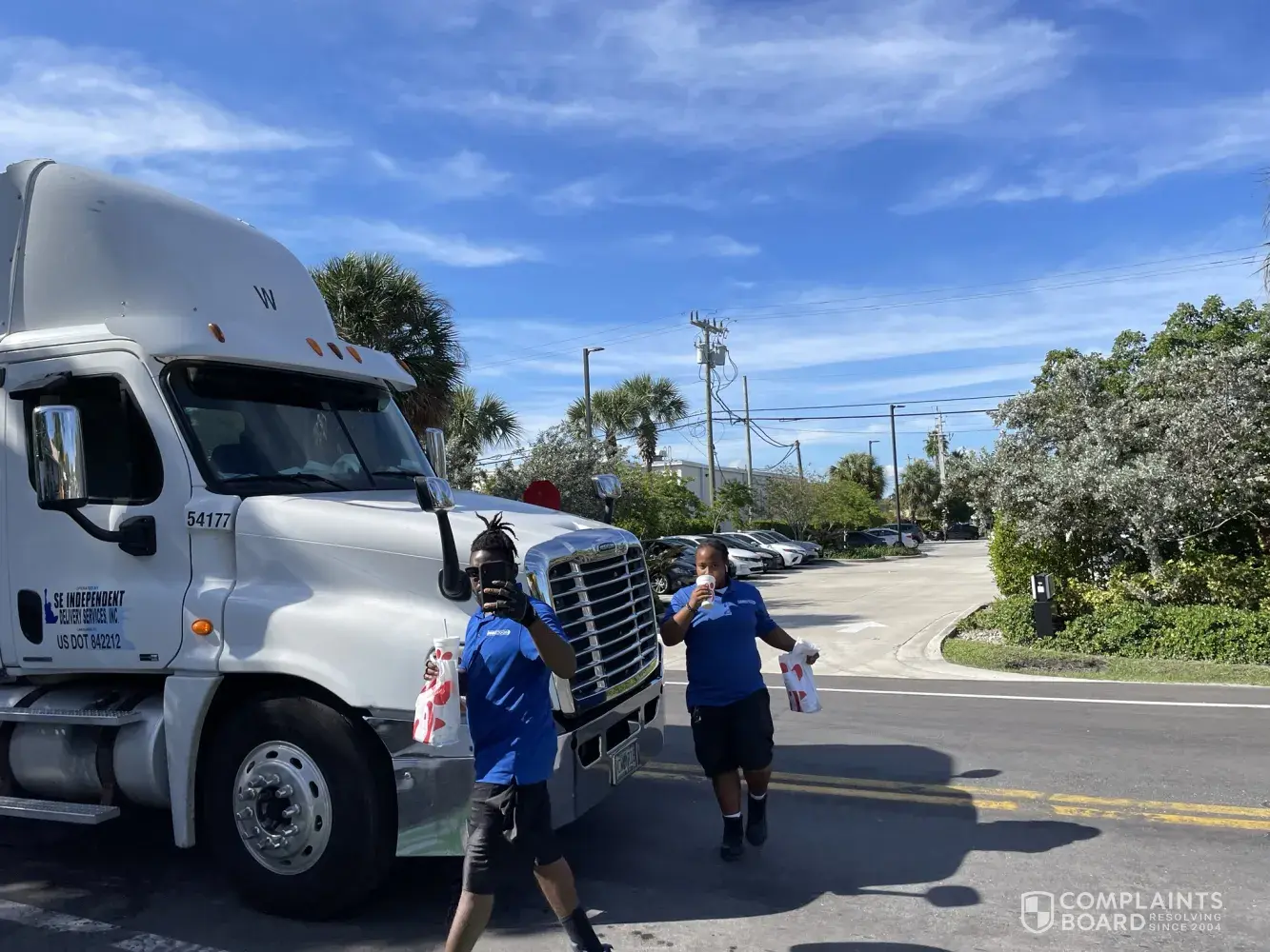 Please inform all your drivers who deliver in Ft. Lauderdale, specifically in the 33306 zip code NOT to park on Middle River Drive to get to Chic Fil A. Truck # 54177 blocked my driveway, as well as my neighbor's, while 2 of them went and got food. We are NOT part of Chic Fil A. This is an extremely busy road. Cars had to go around them, blasting horns and causing a huge inconvenience for drivers. This could have caused a major accident, resulting in Rooms to Go being sued and possibly harming drivers. This is unacceptable!