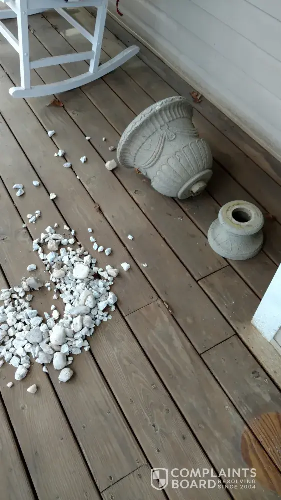 I bought a electric reclining leather sofa and loveseat. I waited 2 weeks to get it delivered, on delivery I waited 4 hours. My sofa had a 10" cut on back and edge of back cushion had rubbed spot on it. The loveseat was dropped twice and ripped bottom corner. Of course both pieces had to be reordered, so I have another 2 week wait and on day if delivery another 4 hour window. They had my glass storm door opened with spring catch locked. They left door open as they set up furniture and wind caught it pulled it back which bent bracket hinge and broke screws off. When door blew back it hit pot which broke top off base and piece that inserted in base broke and the whole side was cracked. I was told I would be contacted regarding my personal property within 2 days and haven't heard nothing. I also requested for inconvenience a designated time for delivery so u don't have to waste a half day waiting and was told no exceptions could be made but could call an hour before. No one had contacted me to apologize for the problems or try to compensate me or make this right and very upset and disappointed with lack of customer service.