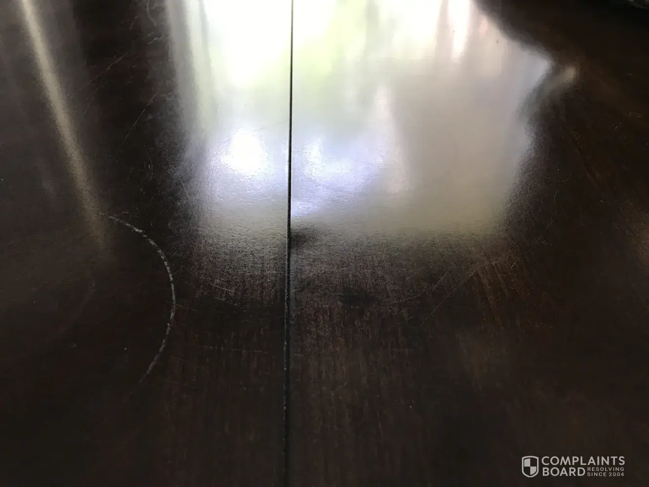 March 11, 2016 my home flooded. We rebuilt and had to purchase all new furniture for our home. The majority of it came from rooms to go in Covington Louisiana. We did not have flood insurance because we were not in a flood zone. My furniture was purchased in April 2016. I understand that there is a one year warranty on your furniture. But when I called them today July 8, 2017 with an inquiry to my kitchen table worping on the table top in 3 different places they would not speak to me. Out of warranty! Obviously this table is defective and I spent a lot of money in your store. And I am not given the time of day is pretty crappie. I would appreciate a call back to discuss this matter. At this time I will never purchase another piece of furniture from your store! Someone should stand behind their product. Attached are the 3 spots on the table that are worped.