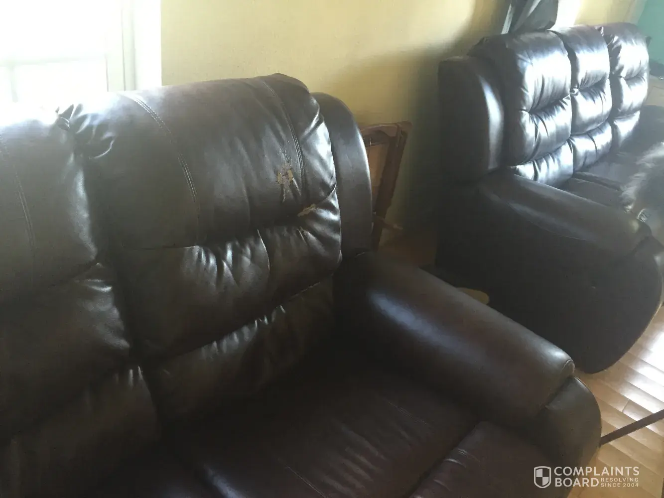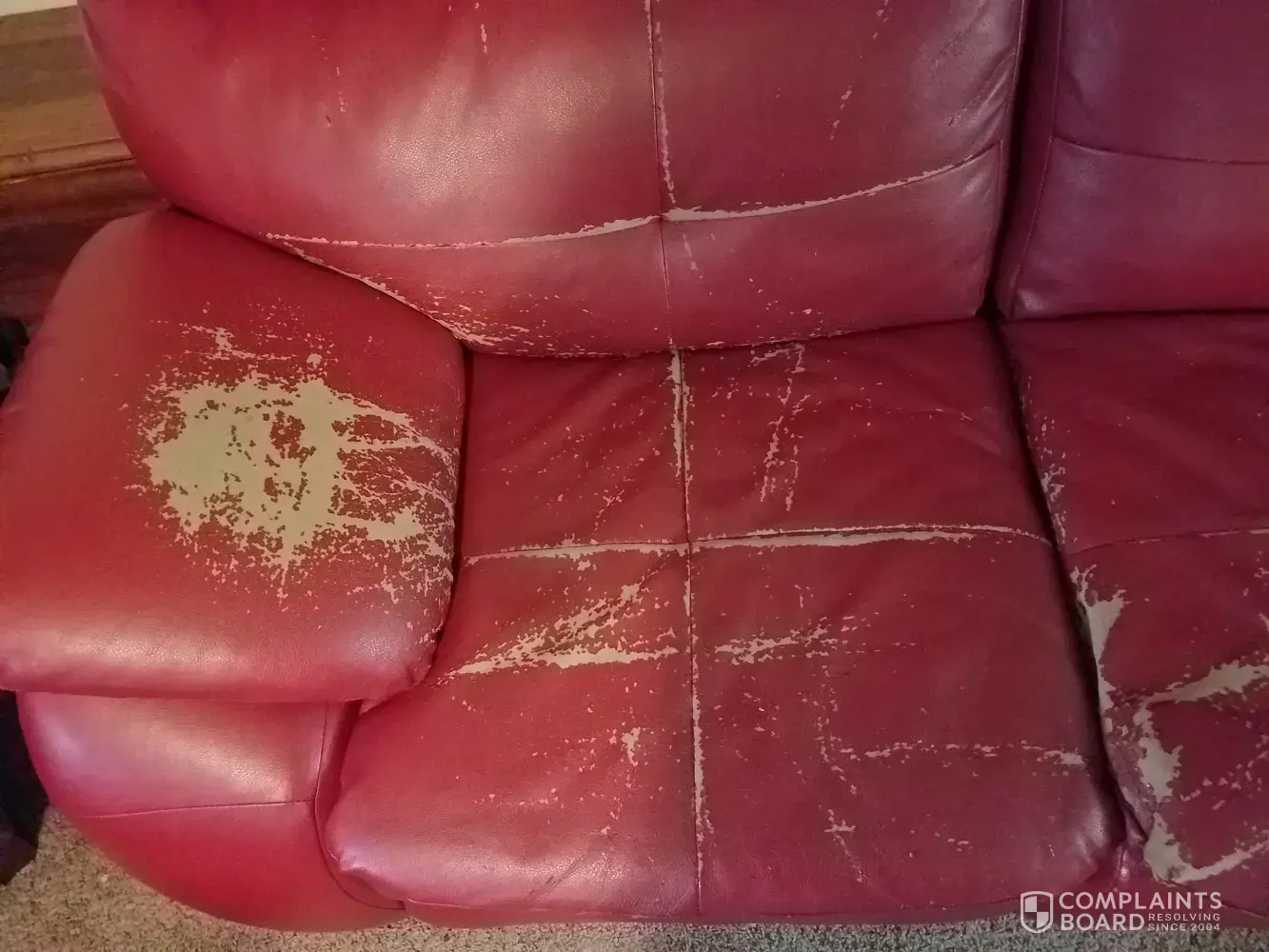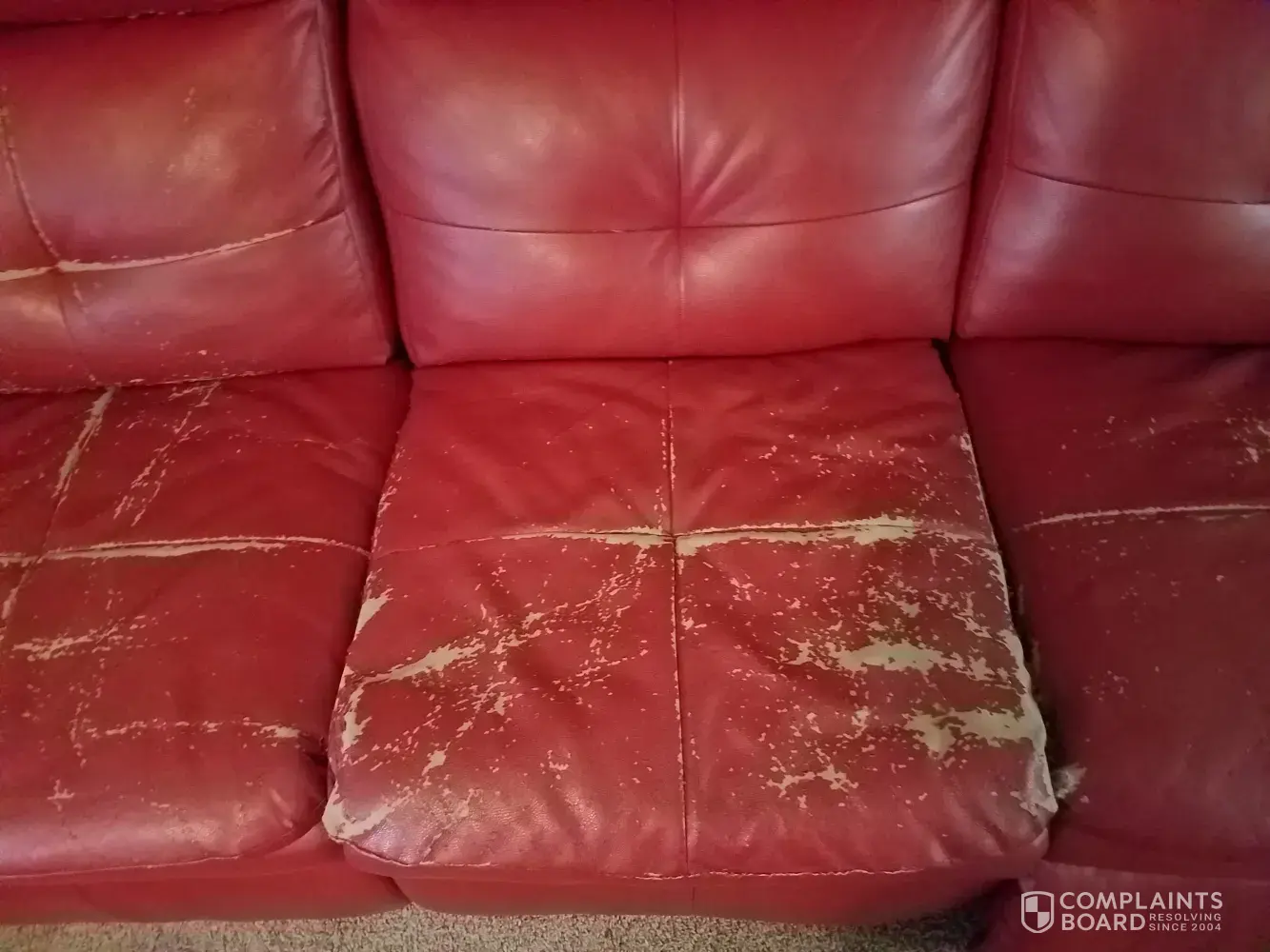 I purchased this bonded leather set about 21/2 years ago. The head rest on loveseat is peeling and flaking. The corners on console are worn out this set does not get much use. I went to where I purchased from myrtle beach sc and was told to send a picture of the damage. Attached is a few pictures. I would like this either repaired or replaced! Thank you Linda Rizzuti Burzo