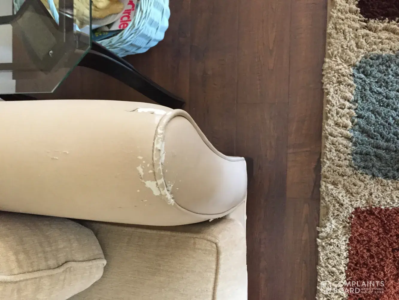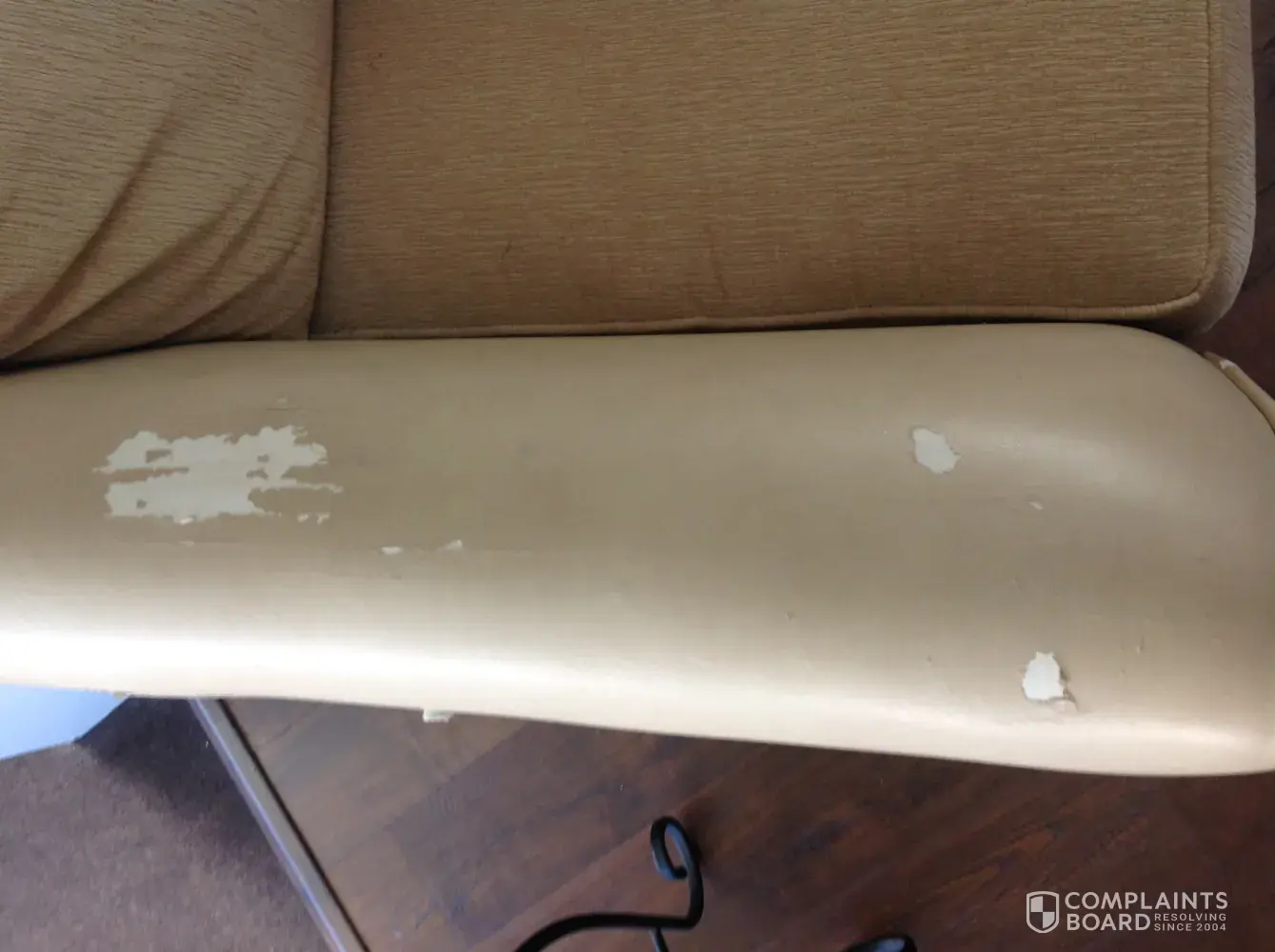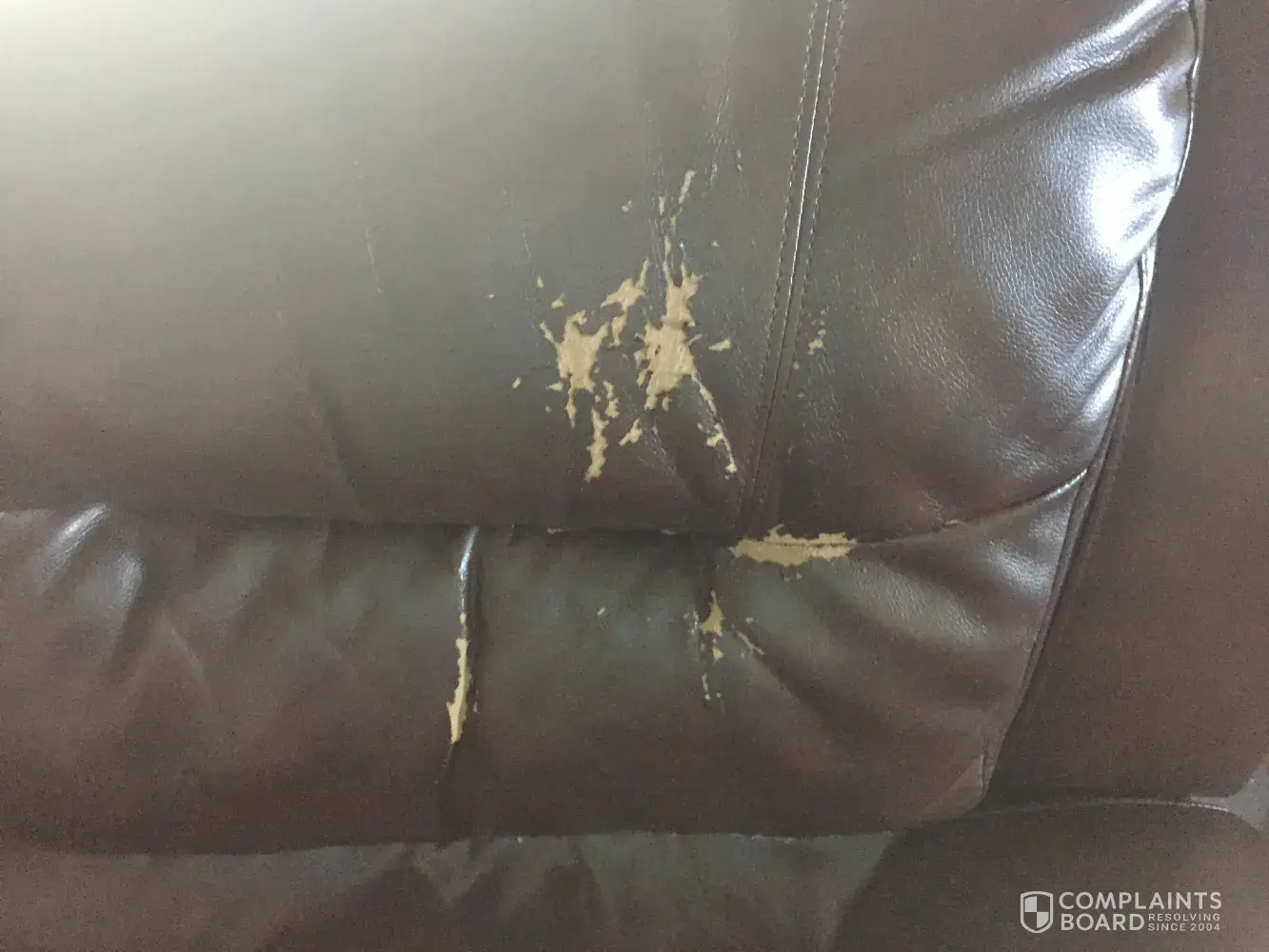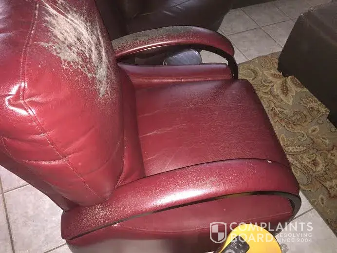 I purchased this bonded leather set about 21/2 years ago. The head rest on loveseat is peeling and flaking. The corners on console are worn out this set does not get much use. I went to where I purchased from myrtle beach sc and was told to send a picture of the damage. Attached is a few pictures. I would like this either repaired or replaced! Thank you Linda Rizzuti Burzo
