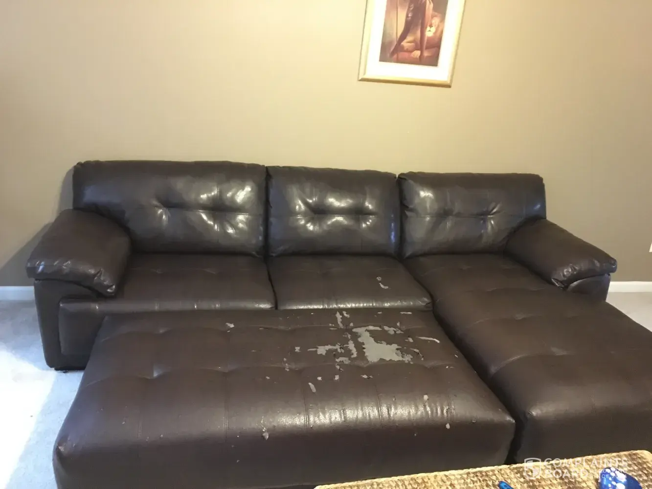 sofa, chaise, ottoman/leather is peeling/would like a repalcement of furniture instead of instore credit