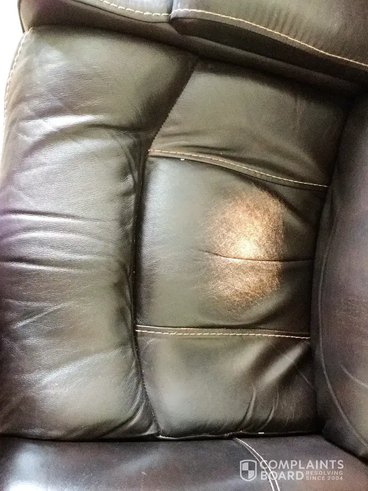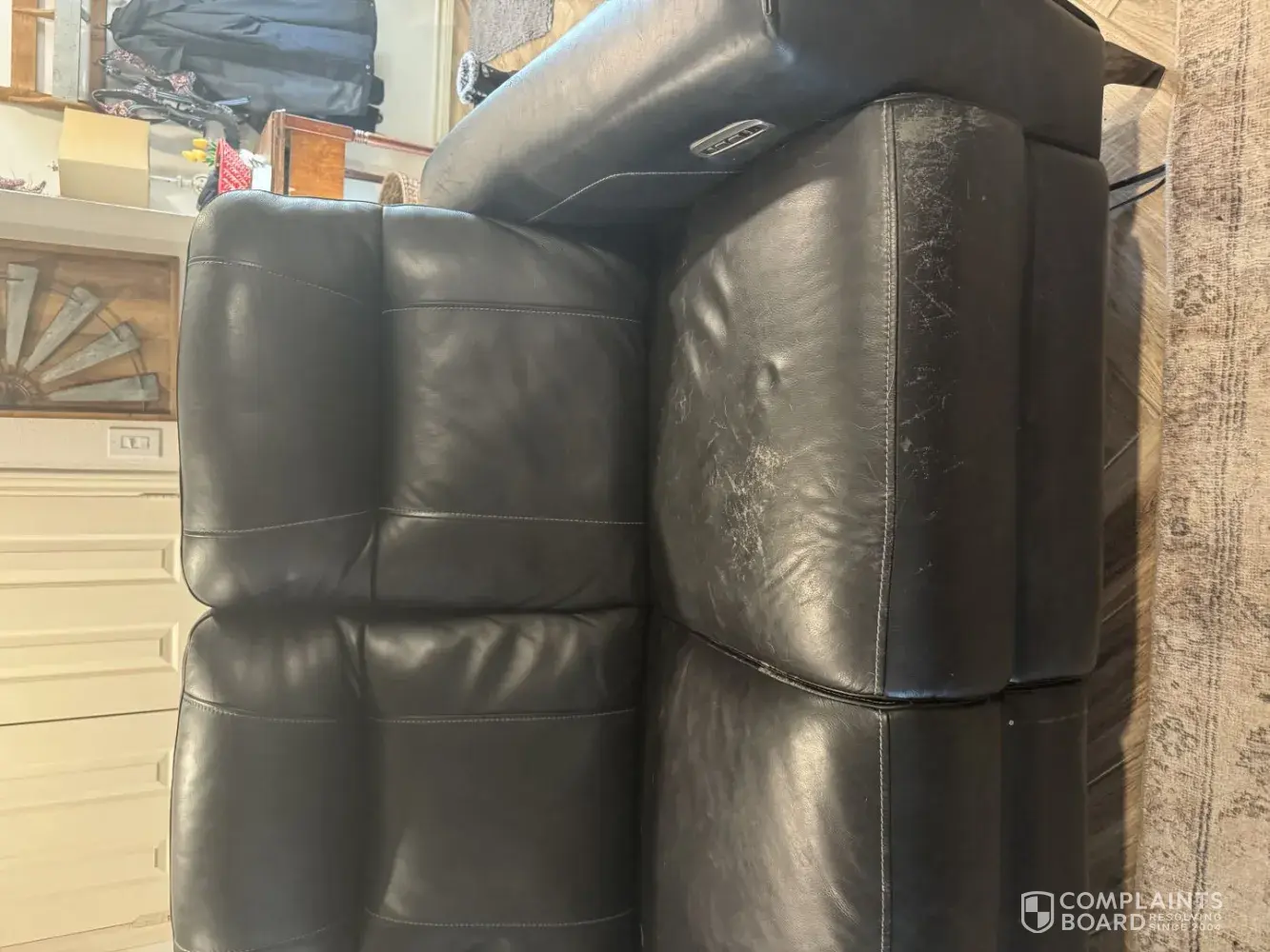 We purchased a leather sectional reclining sofa and spent $4, 000. Upon delivery, head rest had seam coming out so they replaced it. The same head rest after 8 months of use is pealing/discolored. The repairman said it should not happen and said we'd receive a new one. After no communication, we reached out to find that they denied the manufacturer warranty and said it was normal wear and tear. How can an 8 month old "leather" sofa have pealing/discoloration? The extended warranty does not cover this due to it being less than a year old. My husband spoke to the manager of the store and the manager stated that it could be hair products that caused this. Really? First of all, this is my husband's chair and he does not use products in his hair. We are finding that no one wants to assist. A leather sofa should not have these issues after 8 months of use. Customer service is not satisfactory.