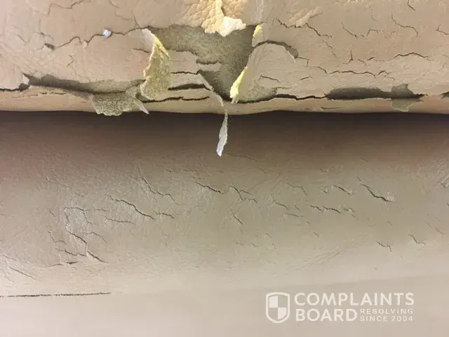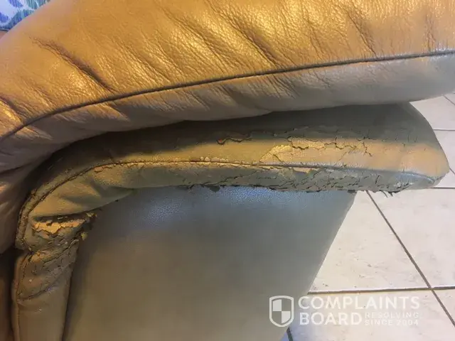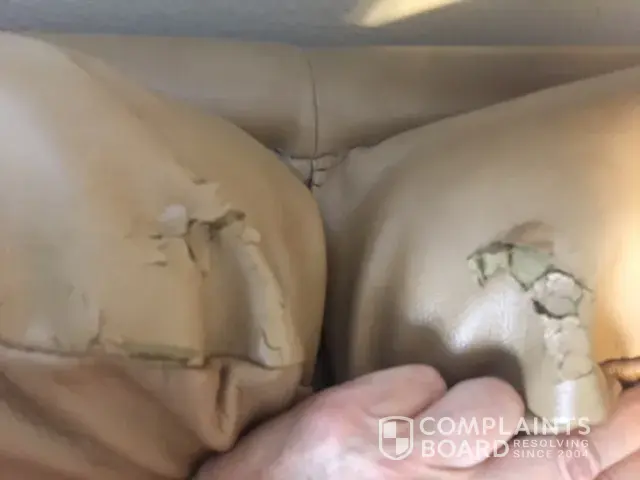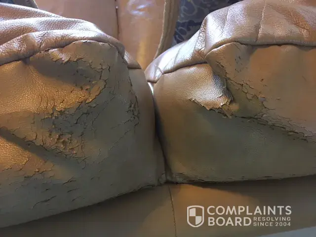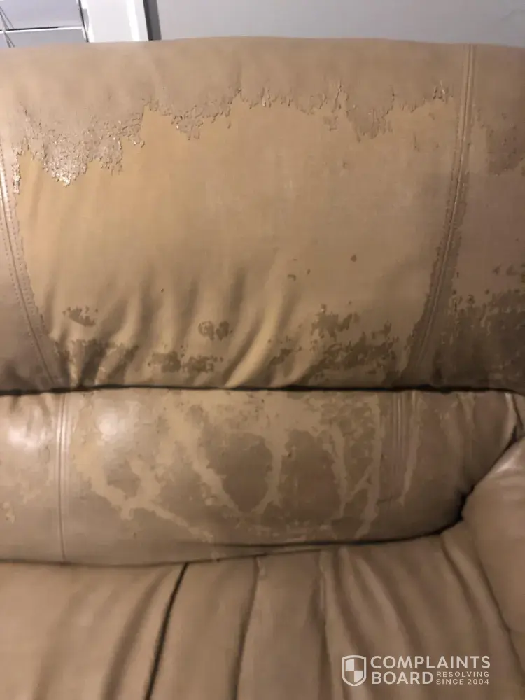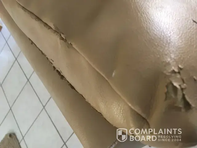Yep the same thing happened to me. They sell it as leather but it is pleather. When I contacted them they immediately allowed me to do a reselect. I had paid off my account so a few weeks later, they closed my credit account. Baseless resasons. I think that it is time for a class action lawsuit against them.