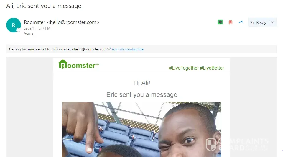 Roomster is the worst company I've ever dealt with. They just won't stop sending me hundreds of emails a day! I've gone to notifications and turned it off, I Unsubscribed, every notification. But no cigar! Still they keep on sending me emails. So I finally deleted my whole account and STILL THESE SUNSA ### KEEP ON EMAILING ME THOISANDS OF TIMES 24/7! I try and contact them. Just an automated very Mexican sounding voice telling me to log in to get 24/7 representative service. They won't let you contact a rep unless you log in, so then you have to resign up with Facebook in order to get to a page where there's no number, there's no live 24/7 rep Chat, No, there's only a section you can write a complaint and email it to god knows where... where emails go to die obviously! Because no one ever answers, they completely ignore the many emails you send telling hem to screw off already and just keeeeeep on keeping on emailing ya, over and over and over and over and over and over again!...(( -_-)) >_
