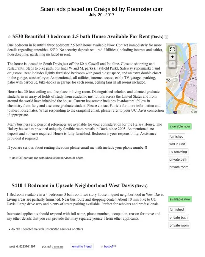 roomster still posting scam ads on craigslist