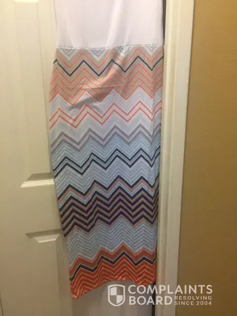 Forget your mailing address and I am not taking a picture. First it will cost me more than the dress cost to send it back. What did you spend a whole $1 making it? It is supposed to be one color but it is two, and they don't match. It has a big hole in the front and there is no way to hide it. I would like my money back but from your reviews online I guess you won't be doing that will you? I am so hurt that I have been scammed.