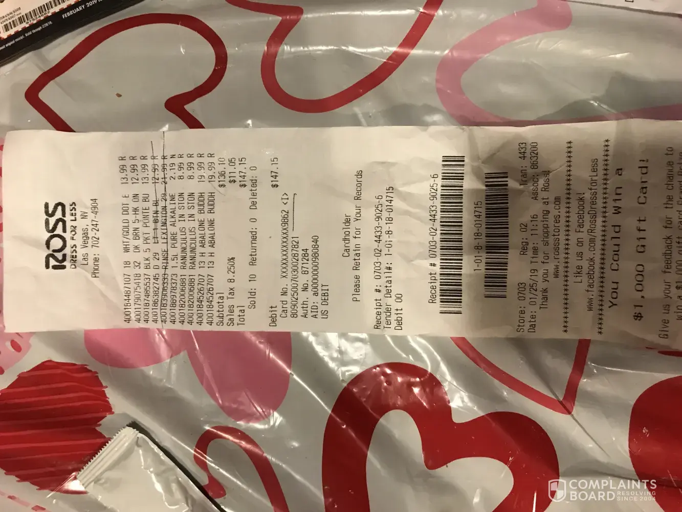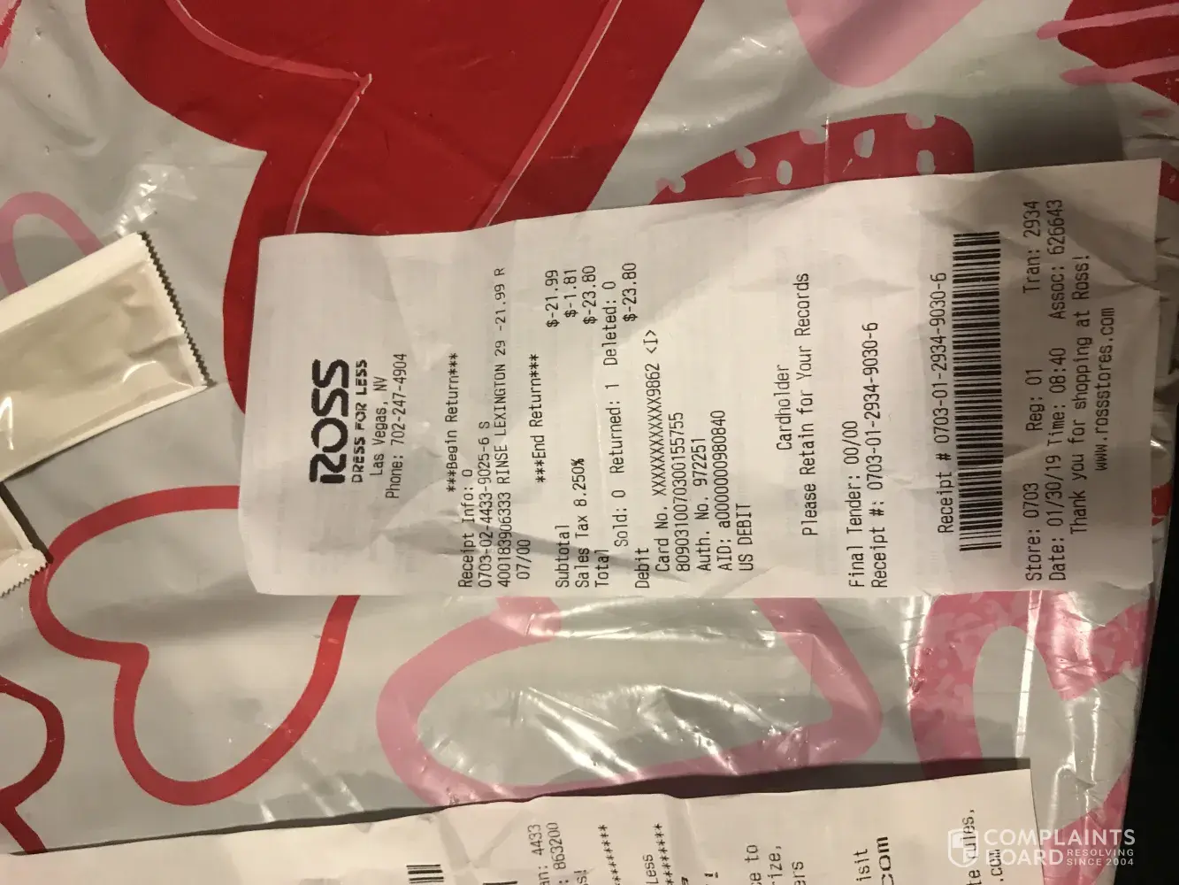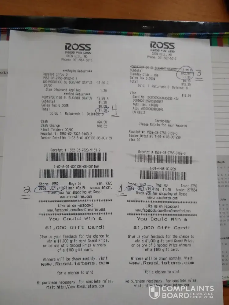 I'm honestly not a complainer and I have lots of patience. I was a bit frustrated and felt as if I was being accused of something I didnt do. I like shopping at Ross when I get the chance always a great selection but I was displeased with the service I received for returning an item. It was a pair of pants I wanted to return because they didn't fit how I...