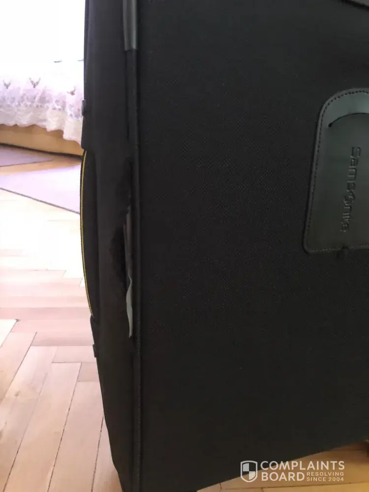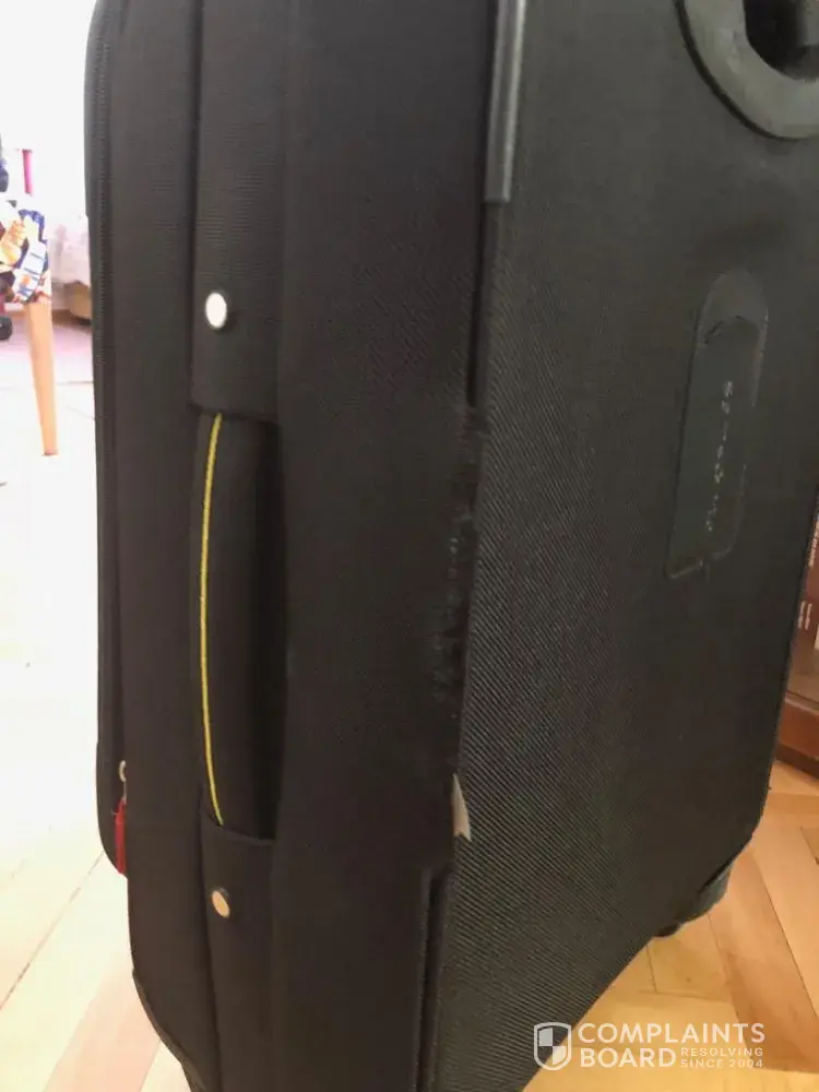 I have purchased a Samsonite brand carry on luggage from ROSS Kissimme Florida on 13 April 2018 and at my first usage the side stitches of the luggage has come off. As you can see from the photographs attached, this is a production fault.