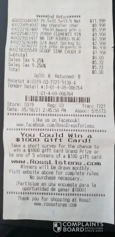 Also not sure if she was a manager or what's her role, but she gave orders to the catchier & claimed ownership of the store while she was arguing that this item belonged to another store. That's another issue. ROSS is a franchise, even if the item was at another store we can exchange it at that one.