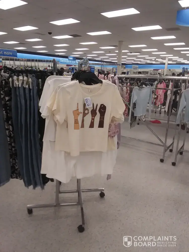 You are carrying a sign language tshirt that is not American Sign Language. It implies gang symbols and Racial hand gestures as if they were letters. If one signing symbol was wrong I would say someone made a mistake. Two out of four and It is intentional. The second symbol is not the letter O in sign language but actually a known gang symbol. The last one...