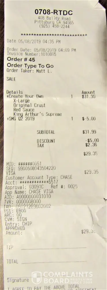 Round Table Pizza Complaints Page 7 of 7