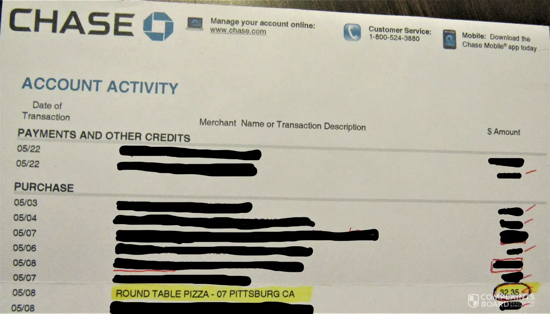 Round Table Pizza extra charge on my visa