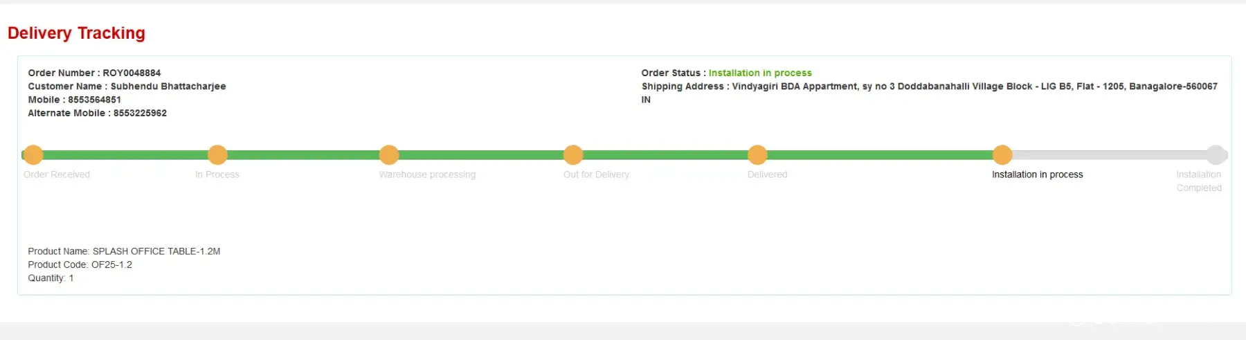 When I am checking in their website under "Track Order", I am able to see the update only for the table, which got delivered but nothing for the chair.