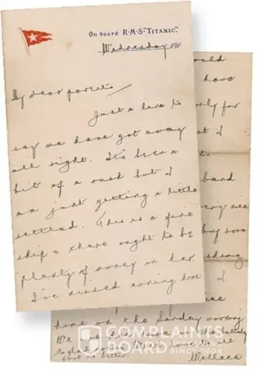 A museum gift shop in Colorado acquired a large lot of misc. old hand written letters from the early 1900's, since most had mundane content, most signed first name only. They sent the letters to a print shop that still had the old "Letterpress" printing presses. These presses used rubber based ink and lead plates. The letters were all imprinted with "Titanic Letterheads." These were only meant to be sold and owned as NOVELTIES. These all looked impressive and I own two of these.