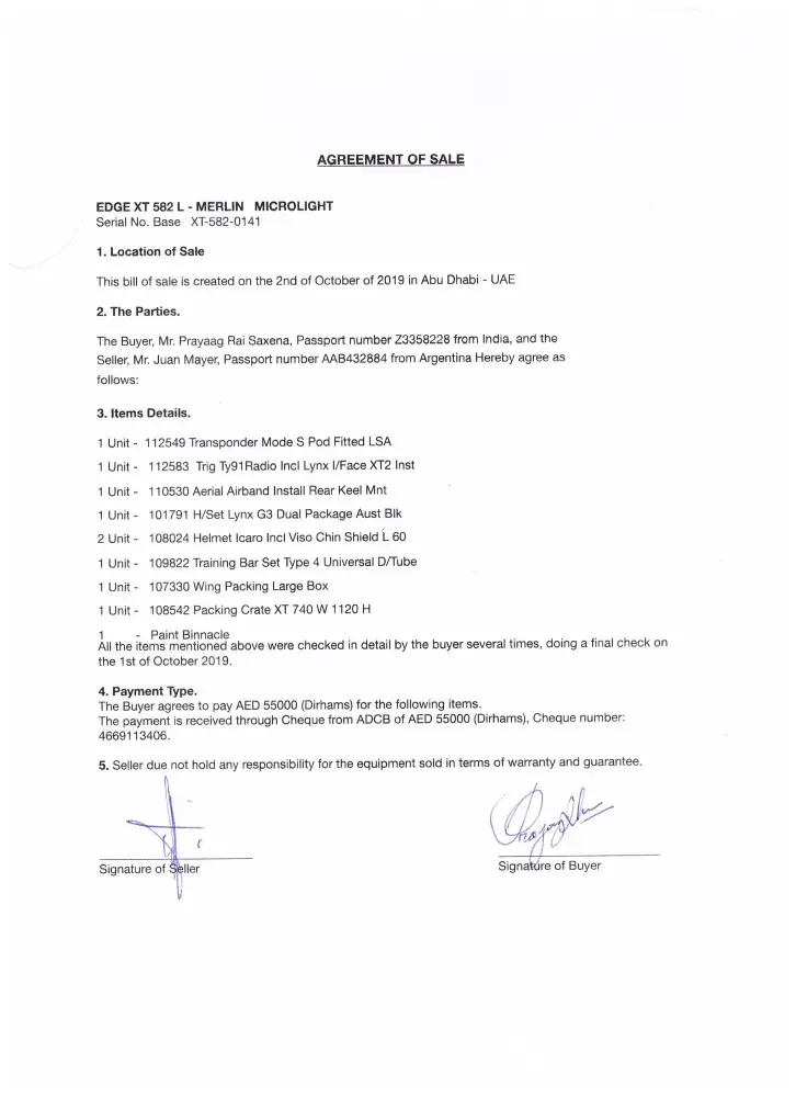I had requested him to give me receipt of my equipment for which he said will be given during shipping out to India.